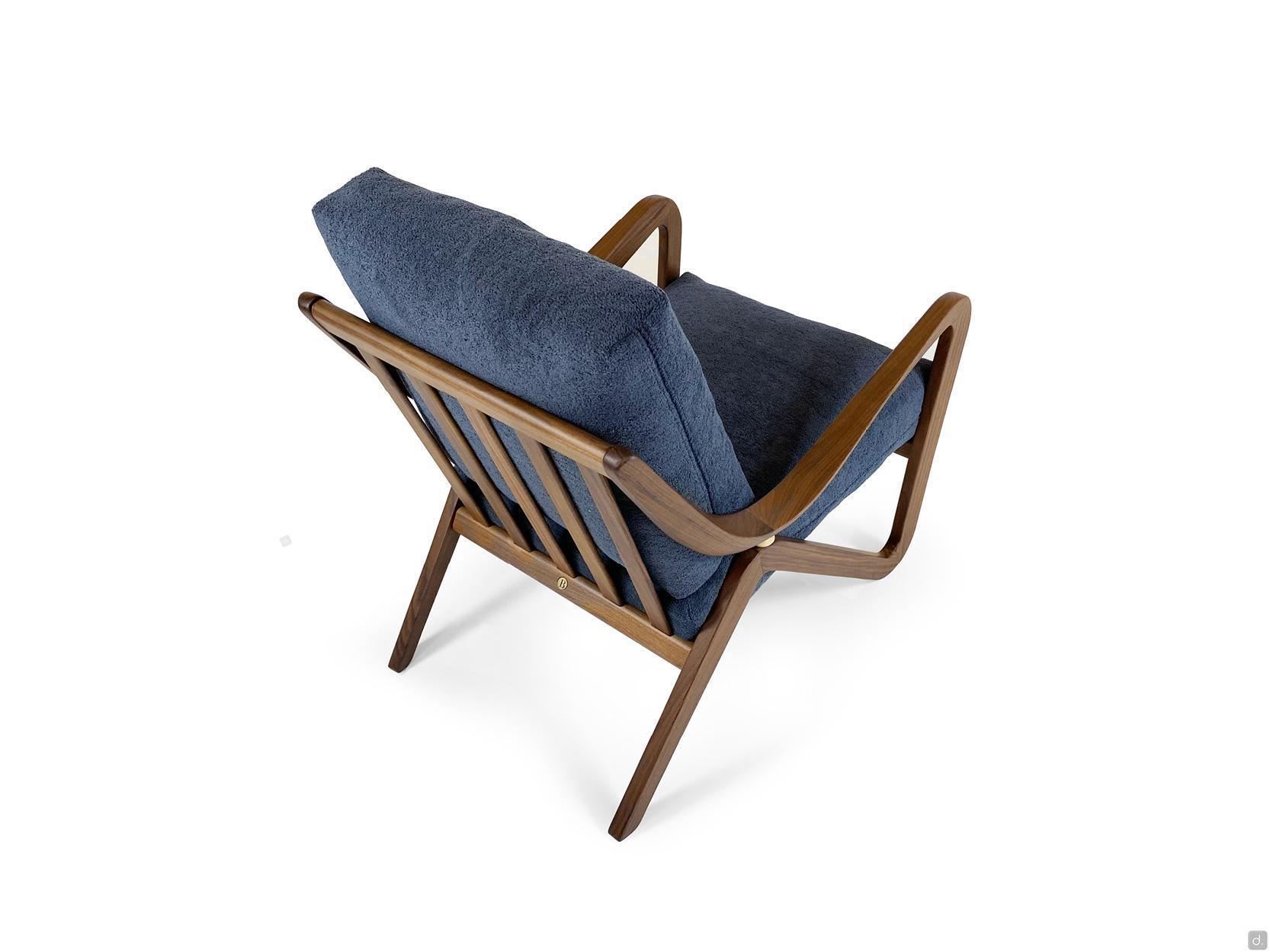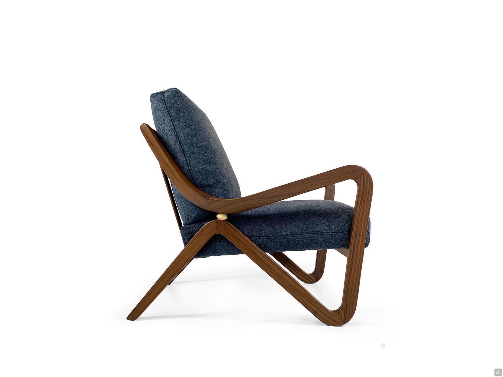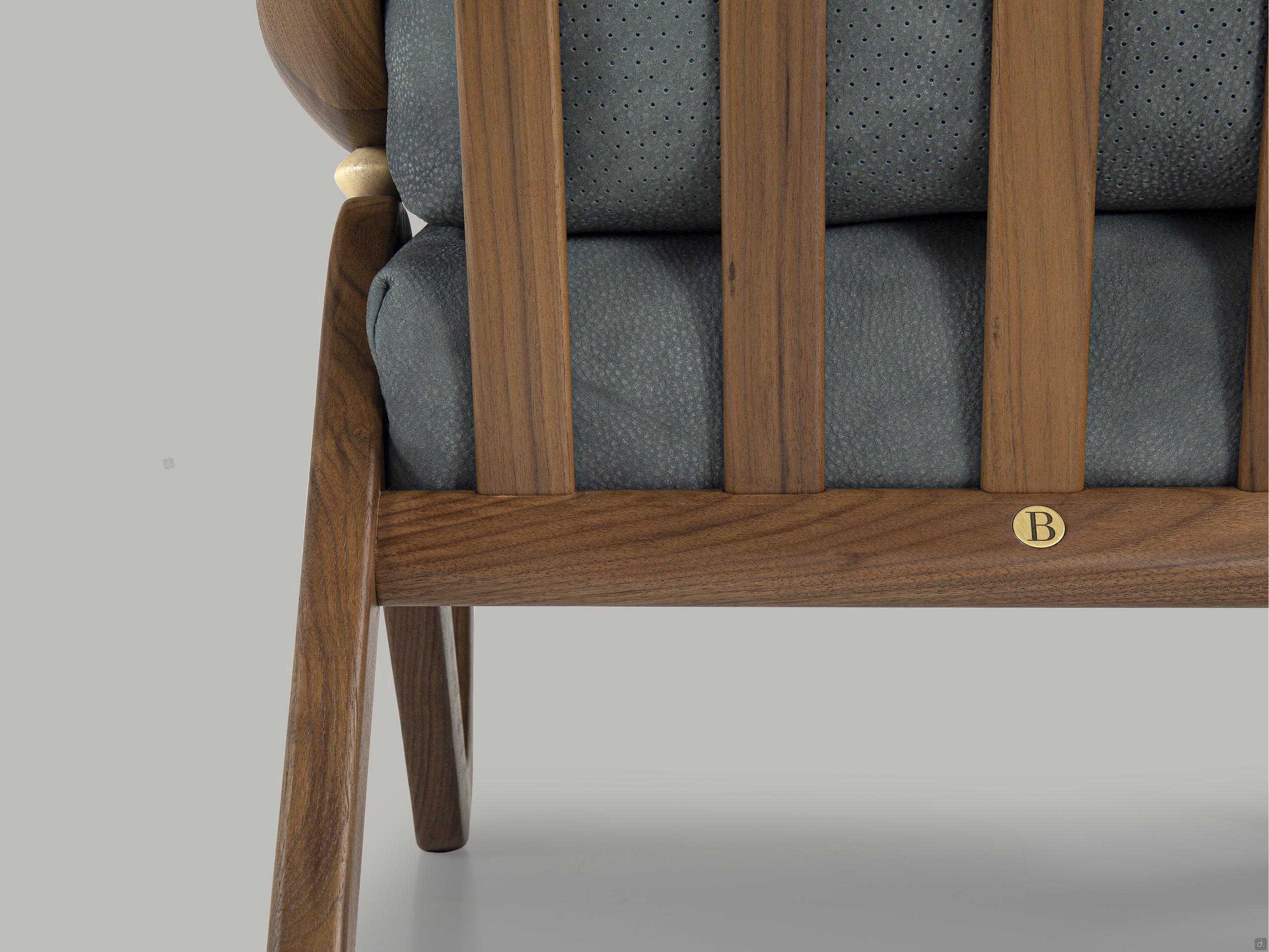 Jody est un fauteuil rembourré avec accoudoirs en bois parfait pour un salon au design vintage. Le fauteuil Jody présente une forte connotation sculpturale et artisanale, caractérisé par sa structure en bois massif réalisée la main et incurvée, créant ainsi les pieds et les accoudoirs dans une même ligne sinueuse.La solidité et les formes du bois contiennent les deux coussins moelleux de l'assise et du dossier, amoviblea et déhoussables, revêtus de cuir, tissu ou velours.Un fauteuil qui exprime au plus haut point les valeurs, soit l'élégance, le design recherché et le confort.