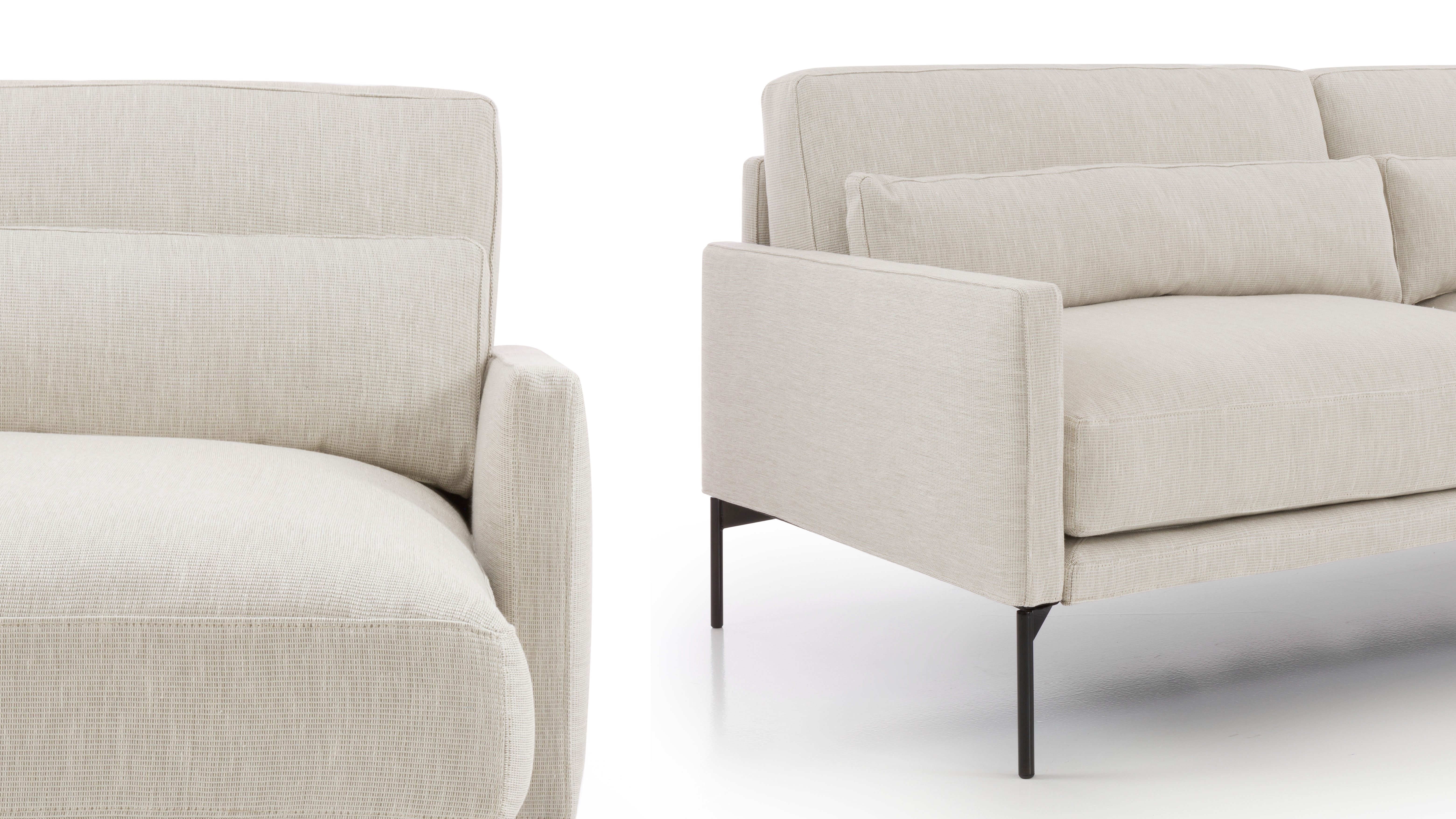 Tissu d'aspect naturel décoré d'une trame de filet blanche : le fil blanc de chaîne et de trame est entrelacé avec un fil de couleur contrastée tissé uniquement en trame. Il peut être utilisé à la fois comme tissu décoratif et comme faux uni.