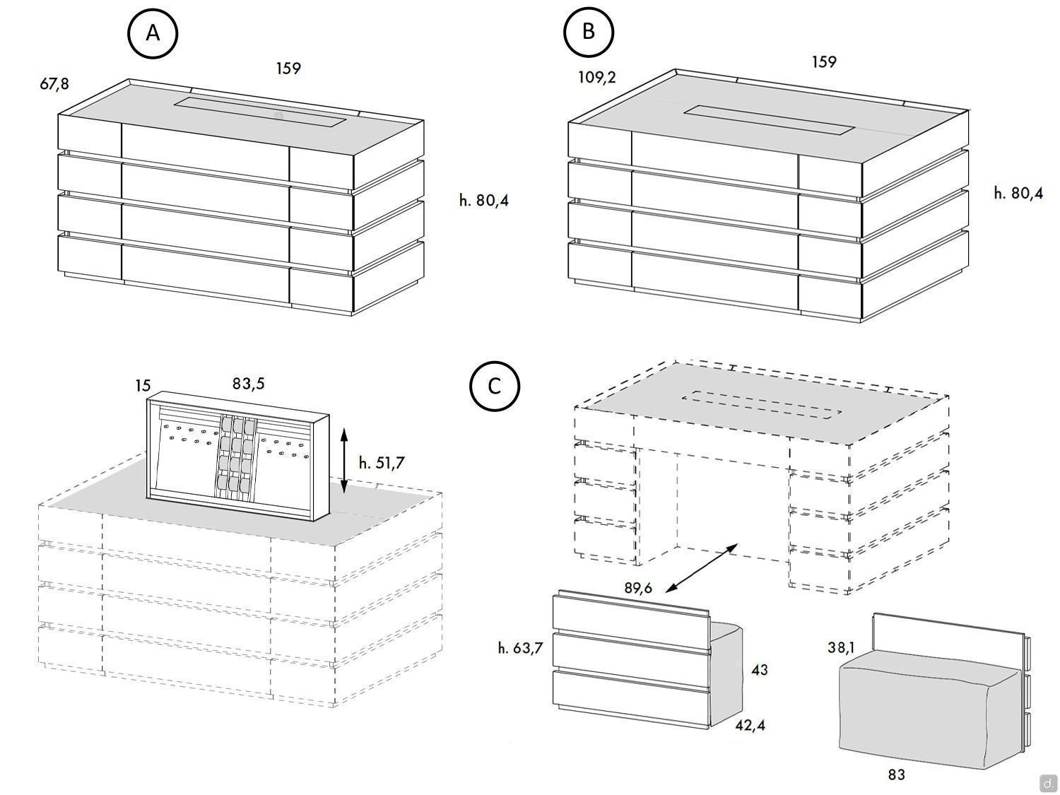 Fauteuil escamotable revêtu : assise recouverte de tissu, simili-cuir ou cuir L.89,6 x P.42,4 x H.63,7 cm - hauteur de l'assise 43 cm. Placé dans la partie centrale en remplacement les 3 tiroirs centraux inférieurs.