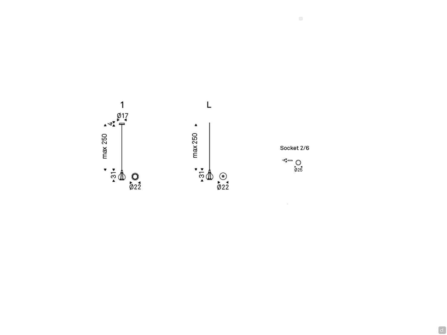 Modèle et dimensions- diffuseurs : L.22 x H.31 cm- rosace : Ø17 cm pour le modèle à 1 suspension, Ø25 cm pour tous les autres modèles