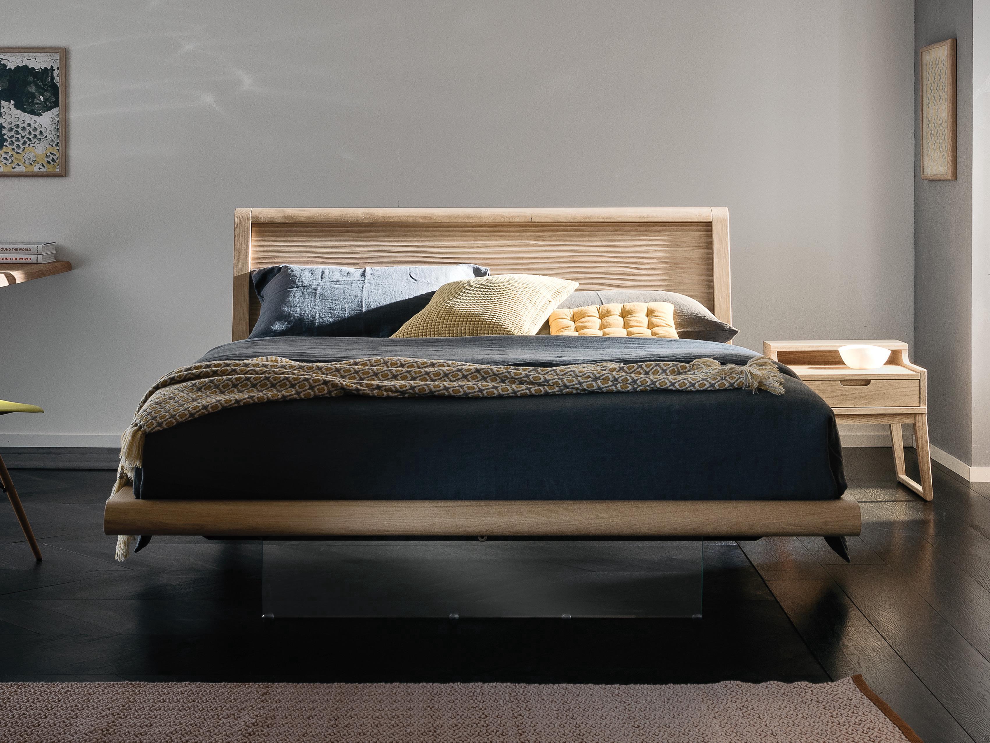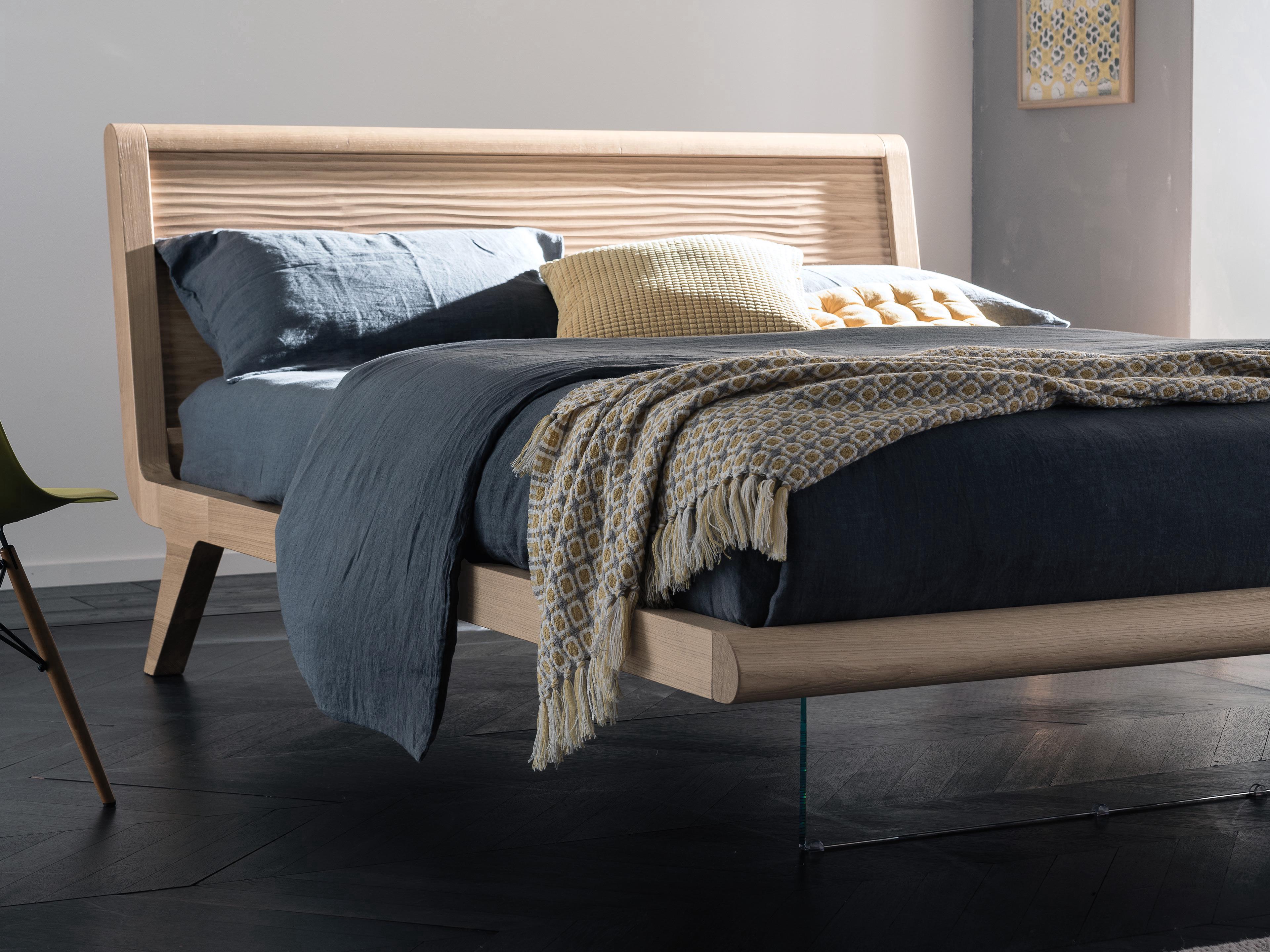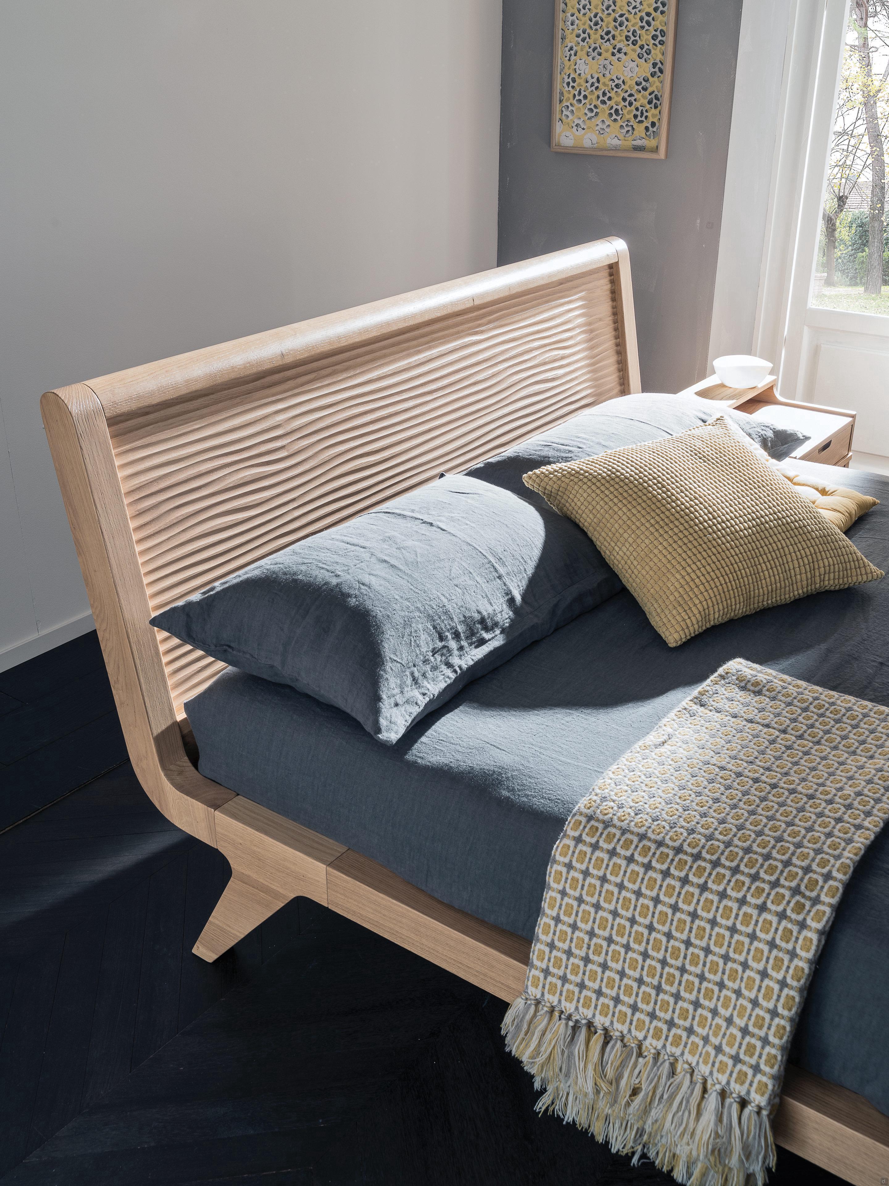 Cadre de lit : en chêne européen massif, avec utilisation exclusive de colles vinyliques et de résines uréiques à base d'eau, conformément à la réglementation UNI-CEE.