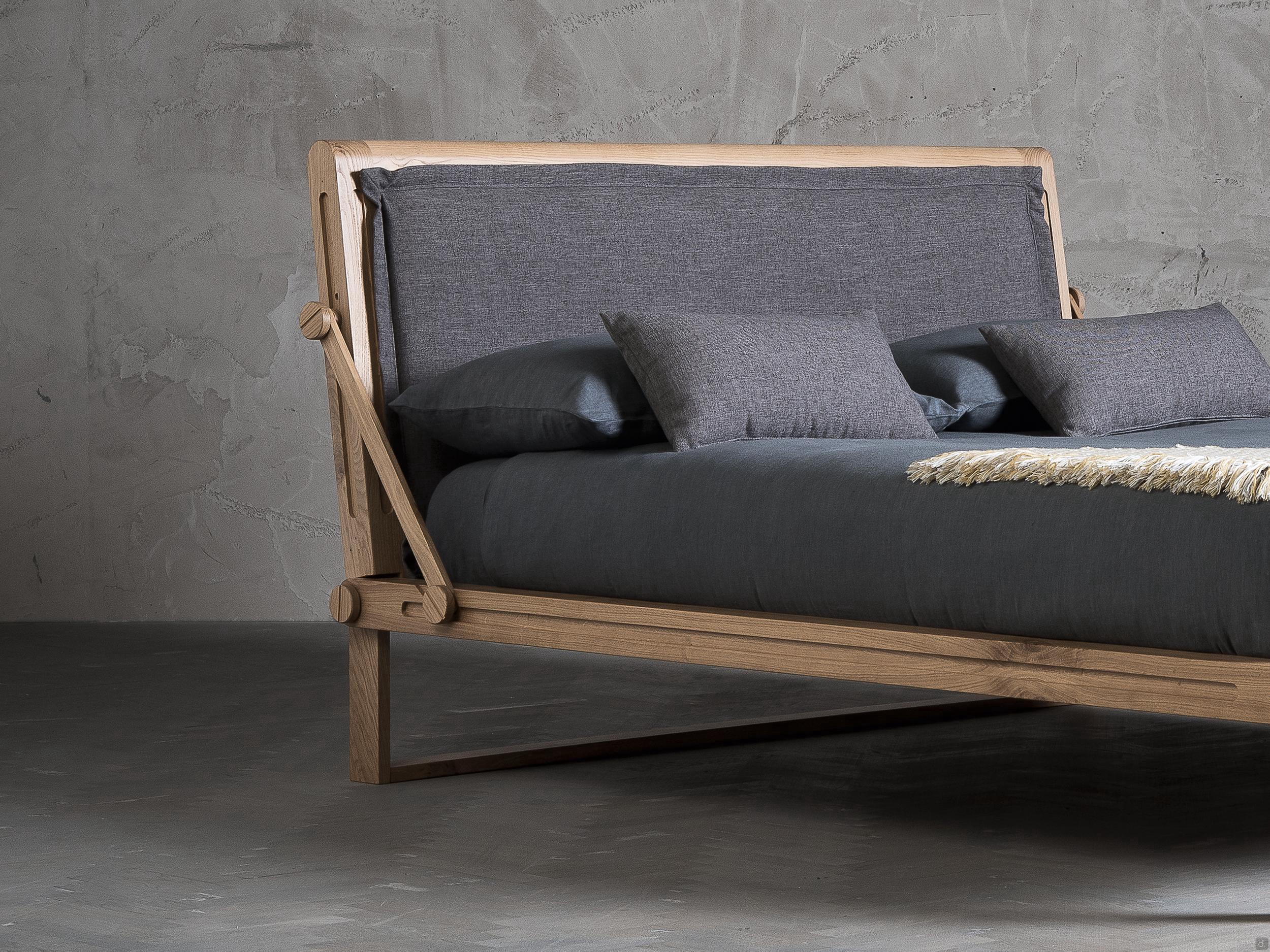 Cadre de lit : en chêne européen massif, avec utilisation exclusive de colles vinyliques et de résines uréiques à base d'eau, conformément à la réglementation UNI-CEE.