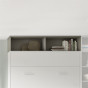 sopralzo: nobilitato melaminico classe E1 sp. 2,5 cm, con vano unico per il modello singolo e piazza e mezza e vano doppio con divisione interna per i modelli matrimoniale francese e standard. Disponibile anche con ribalta cm sp.1,8 con sistema di apertura push-pull.
