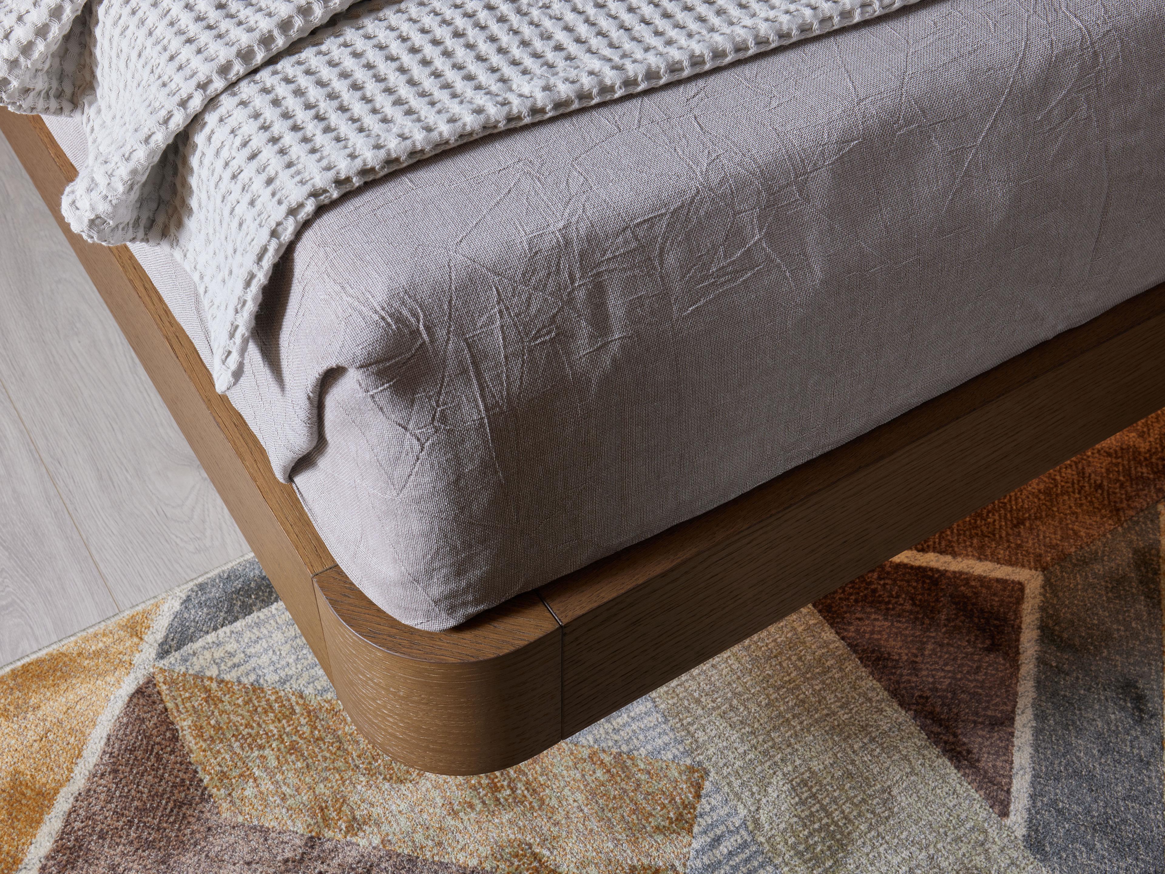L'effet de suspension du lit, qui contraste les formes importantes de la tête de lit en les allégeant, est donné non seulement par la fixation murale du panneau arrière, mais aussi par un seul pied central réglable en hauteur: ainsi, selon les préférences de chacun, il est possible d'avoir un cadre de lit d'une hauteur comprise entre 34,5 et 44,5 cm.