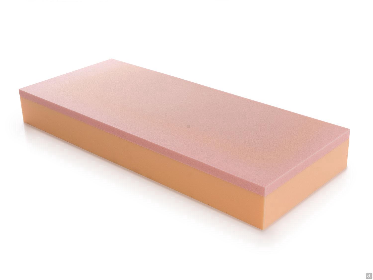 Schiuma flessibile (5): una schiuma a base polimerica estremamente versatile, anallergica, resistente ed ergonomica. È realizzata con una base poliuretanica e completata da agenti espandenti di origine naturale privi di sostanze nocive per l'ambiente. La sua caratteristica principale è l'elevata indeformabilità unita ad un livello medio di elasticità. Offre anche un'ottima traspirazione: la schiuma infatti assorbe l'umidità per rilasciarla in breve tempo.