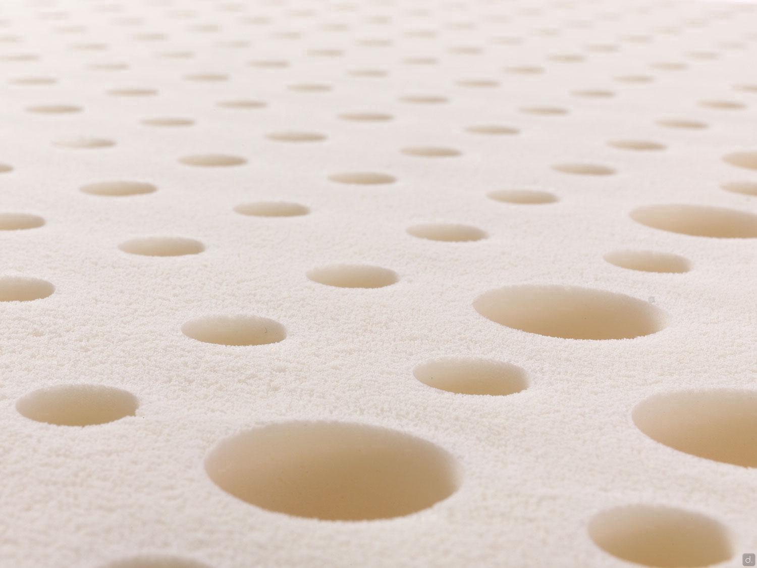 Lattice (2): il lattice è un'emulsione complessa ottenuta dalla linfa dell'albero della gomma Hevea Brasiliensis che viene poi miscelata con aria e vulcanizzata per ottenere la schiuma di cui sono composti i materassi. Il lattice si distingue per essere il materiale naturale più elastico ad ora conosciuto: ciò comporta la capacità di adattarsi con facilità alla forma del corpo in riposo fornendo un sostegno adeguato alla colonna vertebrale e successivamente di recuperare la dimensione originale non appena il carico viene rimosso. La sua struttura a microcelle impedisce la proliferazione di microrganismi come l'acaro della polvere, per questo il lattice è considerato un materiale anallergico.