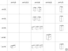 Hauteur: cm 25 / 37,5 / 50 / 62,5 / 75 + épaisseur du plateau et éventuel support au solMatériaux et finitions- mélaminé