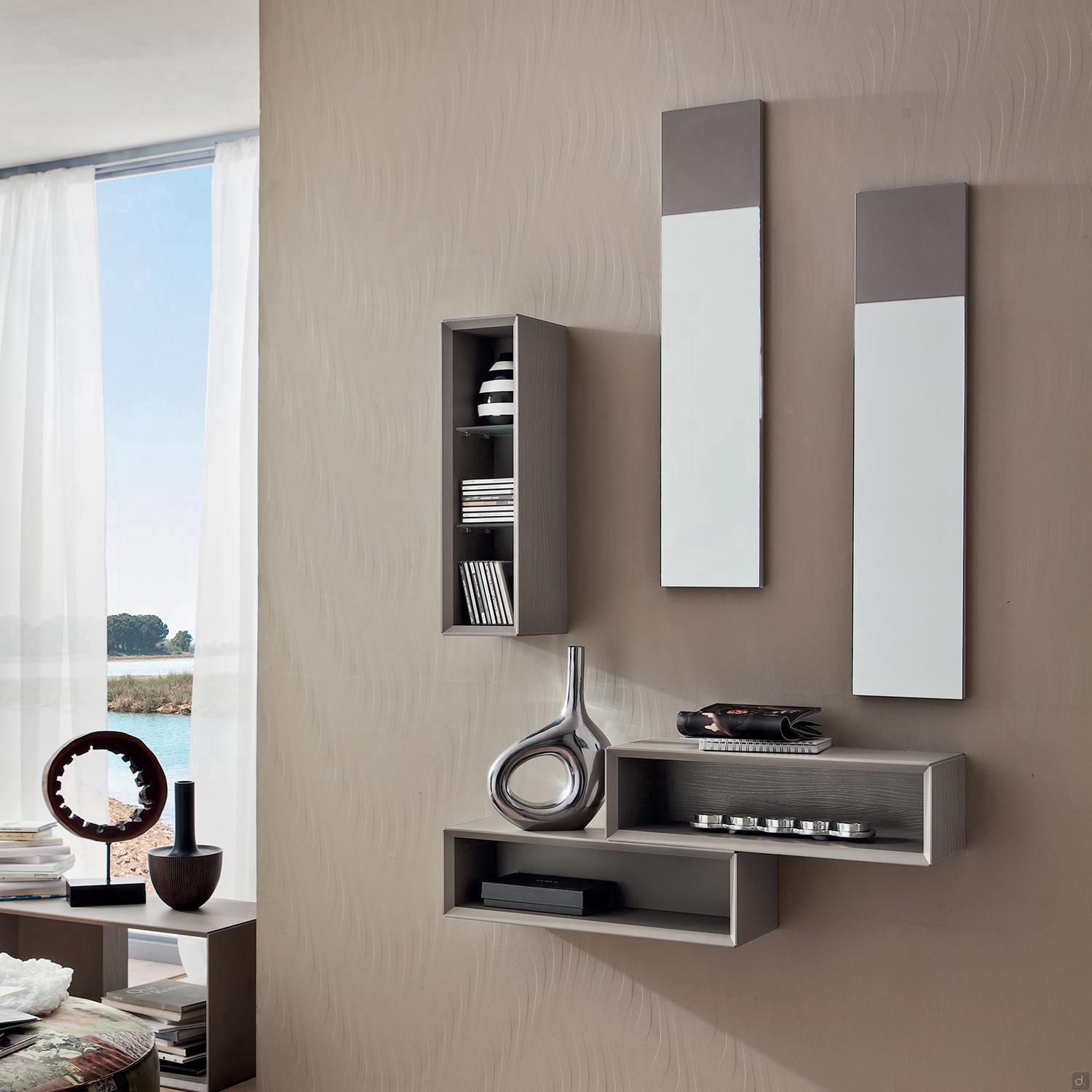 Diggory est un meuble d'entrée avec double miroir, disponible avec patères latérales en métal chromé ou avec élément ouvert vertical. La composition est composée également de deux éléments ouverts horizontaux de la même couleur ou disponibles en contraste, au choix en mélaminé en différentes finitions disponibles. L'élément ouvert vertical est doté de deux rayons en verre qui permettent de diviser le compartiment et de ranger plusieurs objets. Les miroirs comportent une bande haute ou basse selon le positionnement, qui peut être réalisée assortie ou en contraste avec les éléments ouverts. Diggory est une composition asymétrique idéale pour meubler une entrée de style moderne.