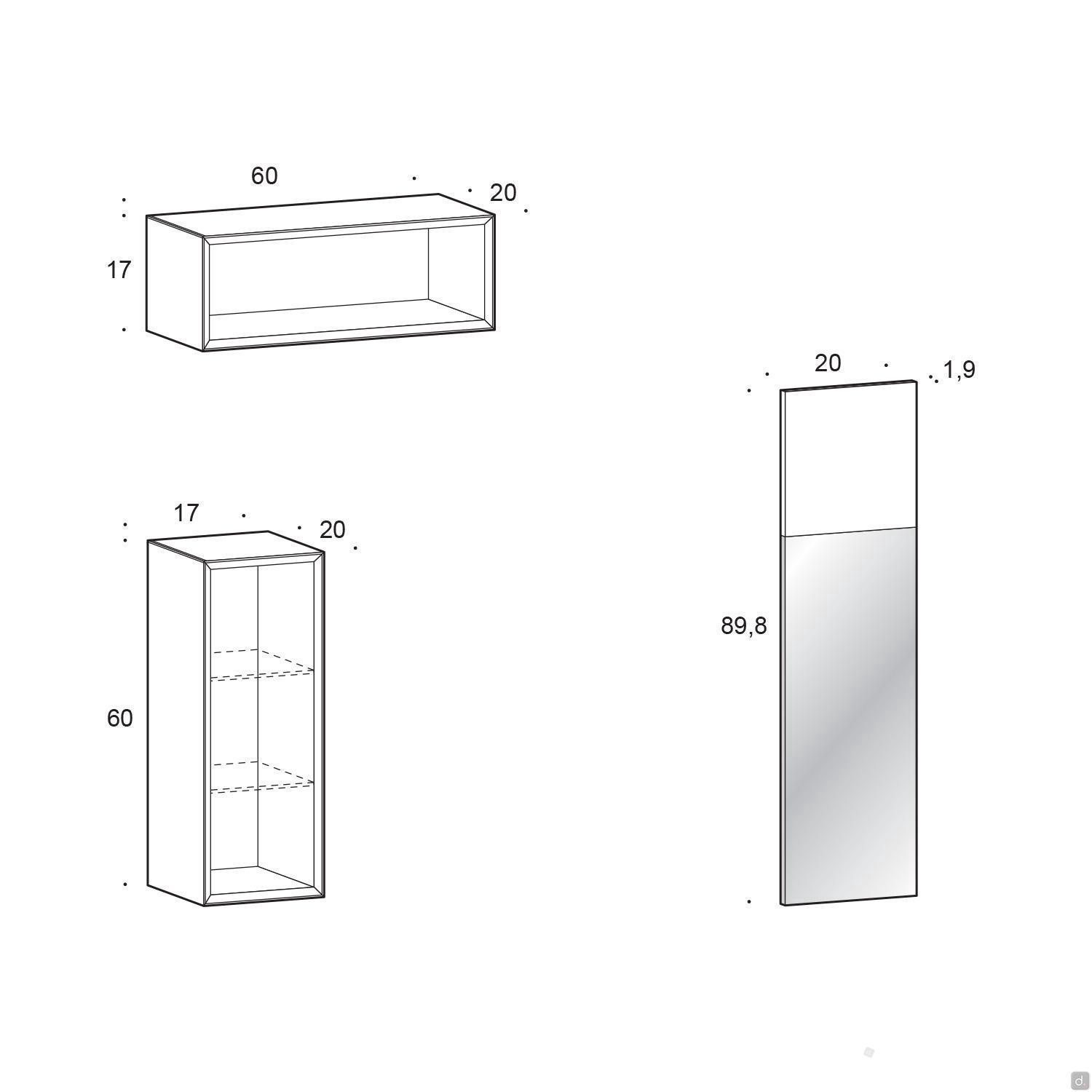 Matériaux et FinitionsEléments Ouverts et Miroirs:- mélaminéPatères:- métal chromé
