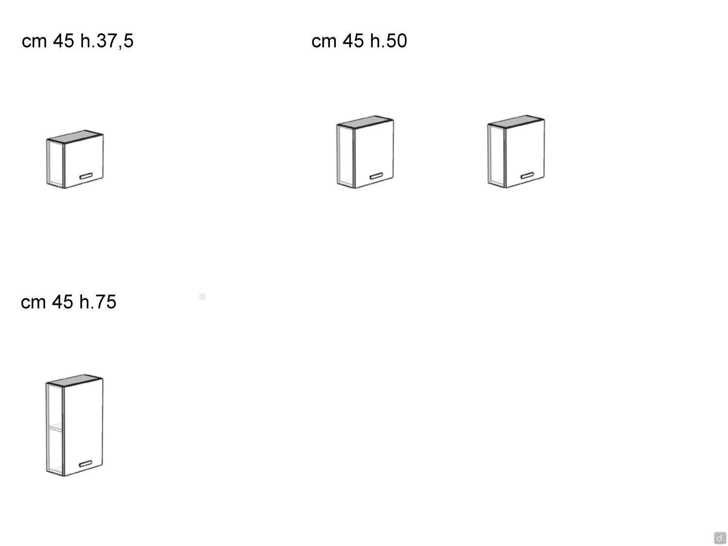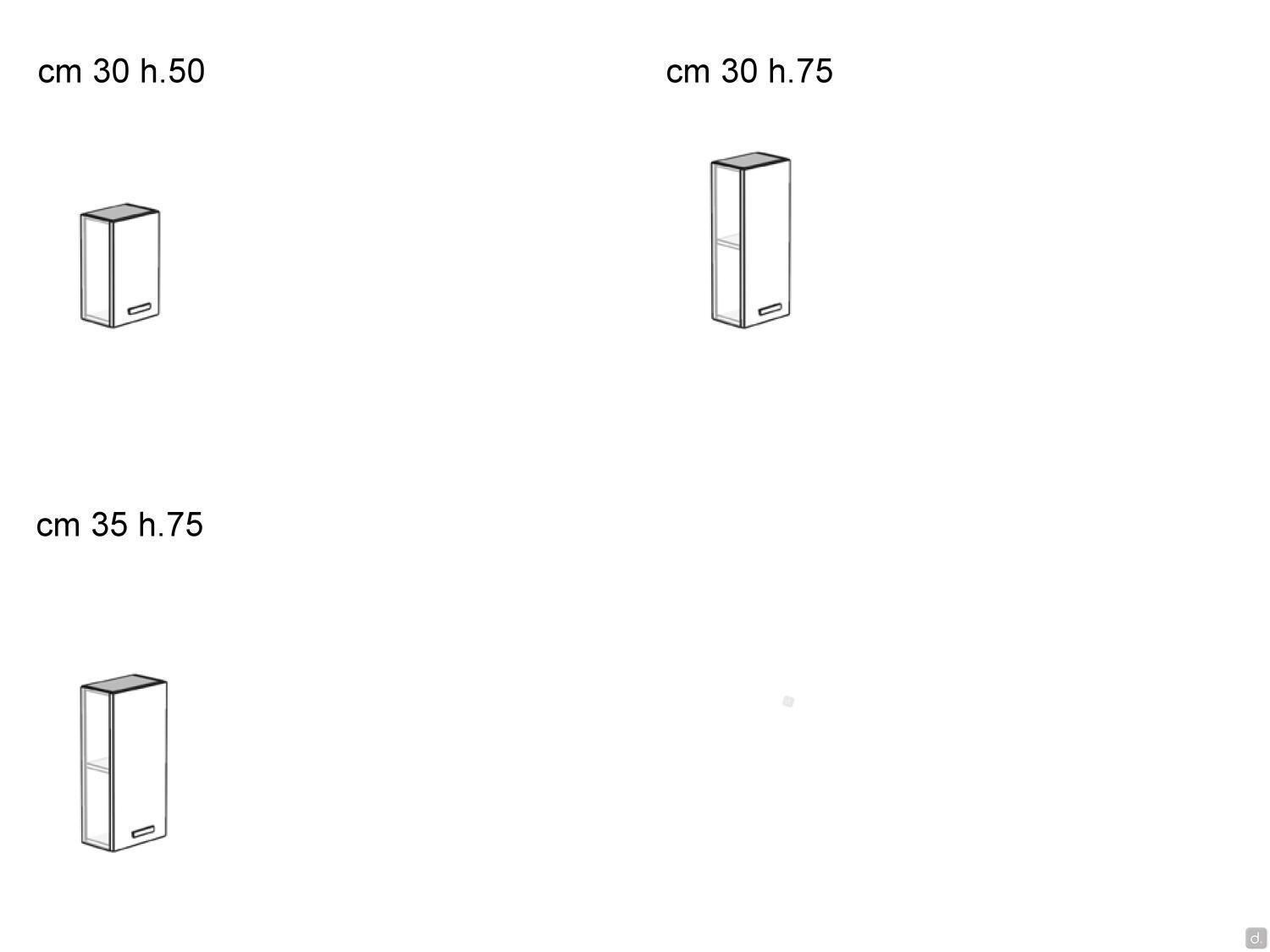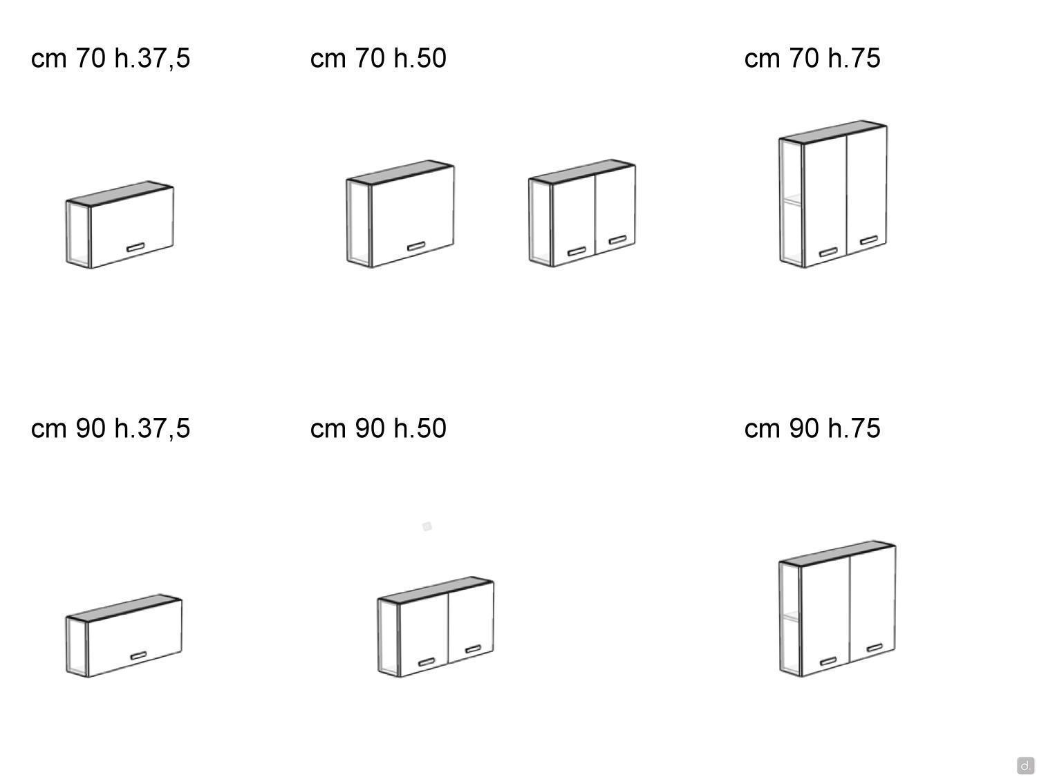 Modèle et DimensionsLargeurs : cm 30 / 35 / 45 / 60 / 70 / 90Profondeurs : cm 20,8 / 37 / 50 / 62 / 67Hauteurs : cm 37,5 / 50 / 75Matériaux et Finitions- mélaminé- laqué mat / mat sur mélaminé / métallisé / sablé / brillantInformation pour votre AchatVous pouvez compléter l'unité murale Oasis avec le top que vous trouverez parmi les produits disponibles en bas de page. Le top est recommandé pour les unités murales à une hauteur qui les rend visibles du dessus ; sans le top, l'unité murale a des joints de panneaux latéraux visibles.