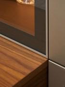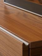 Pannelli Boiserie: realizzati in particelle di legno cm sp.2,5, rivestiti con nobilitazione sintetica anche laccata opaca, metallizzata o con piallaccio di legno verniciato. I pannelli in Laminam vengono invece forniti nello spessore cm sp.1,2. Retro pannello boiserie in MDF nero spessore cm 1,9, completo di predisposizioni e ferramenta per il fissaggio a parete. Il pannello mantiene la boiserie distanziata 2,4 cm dal muro e viene sagomato di volta in volta, in funzione degli ingombri della composizione.