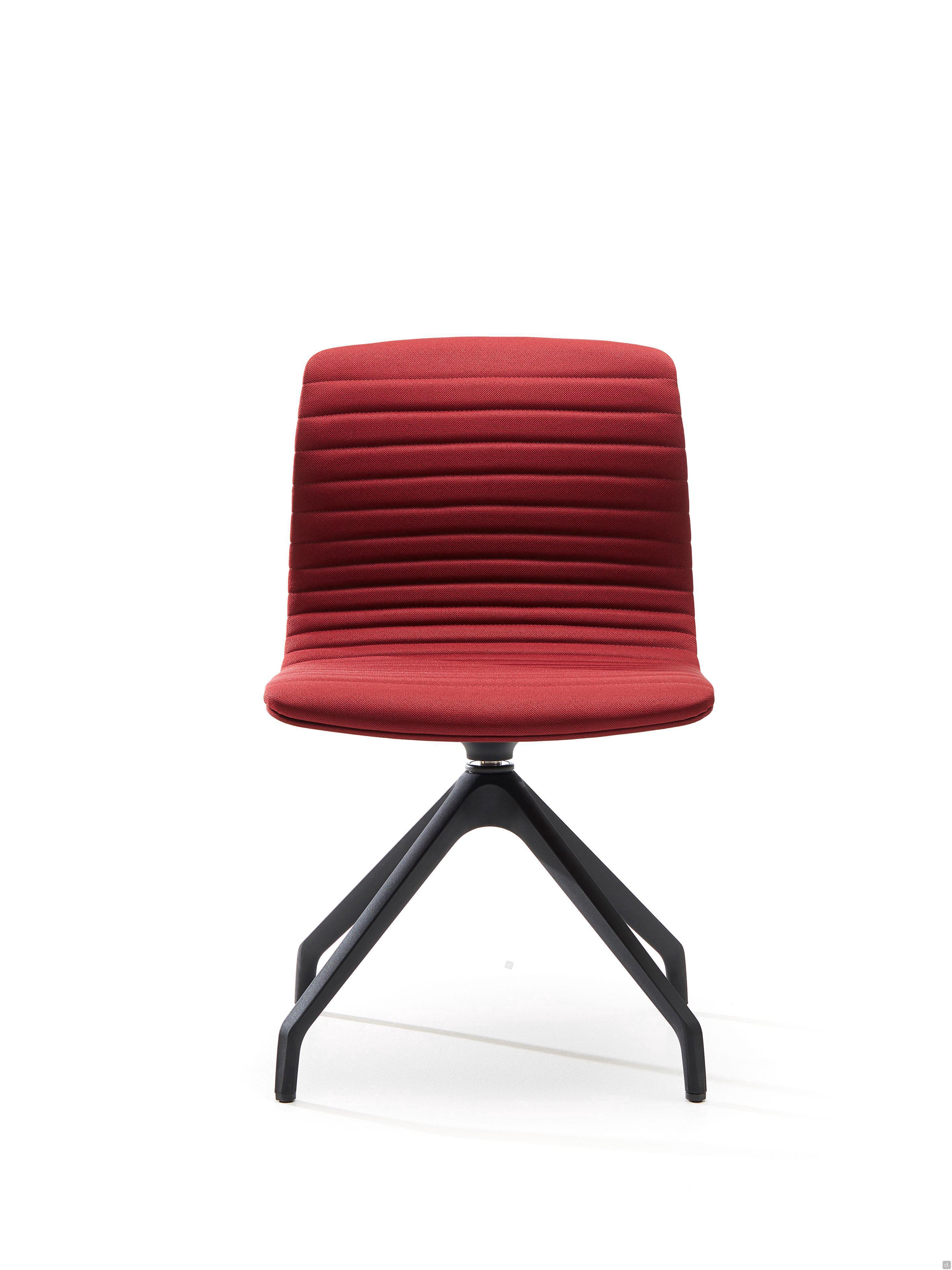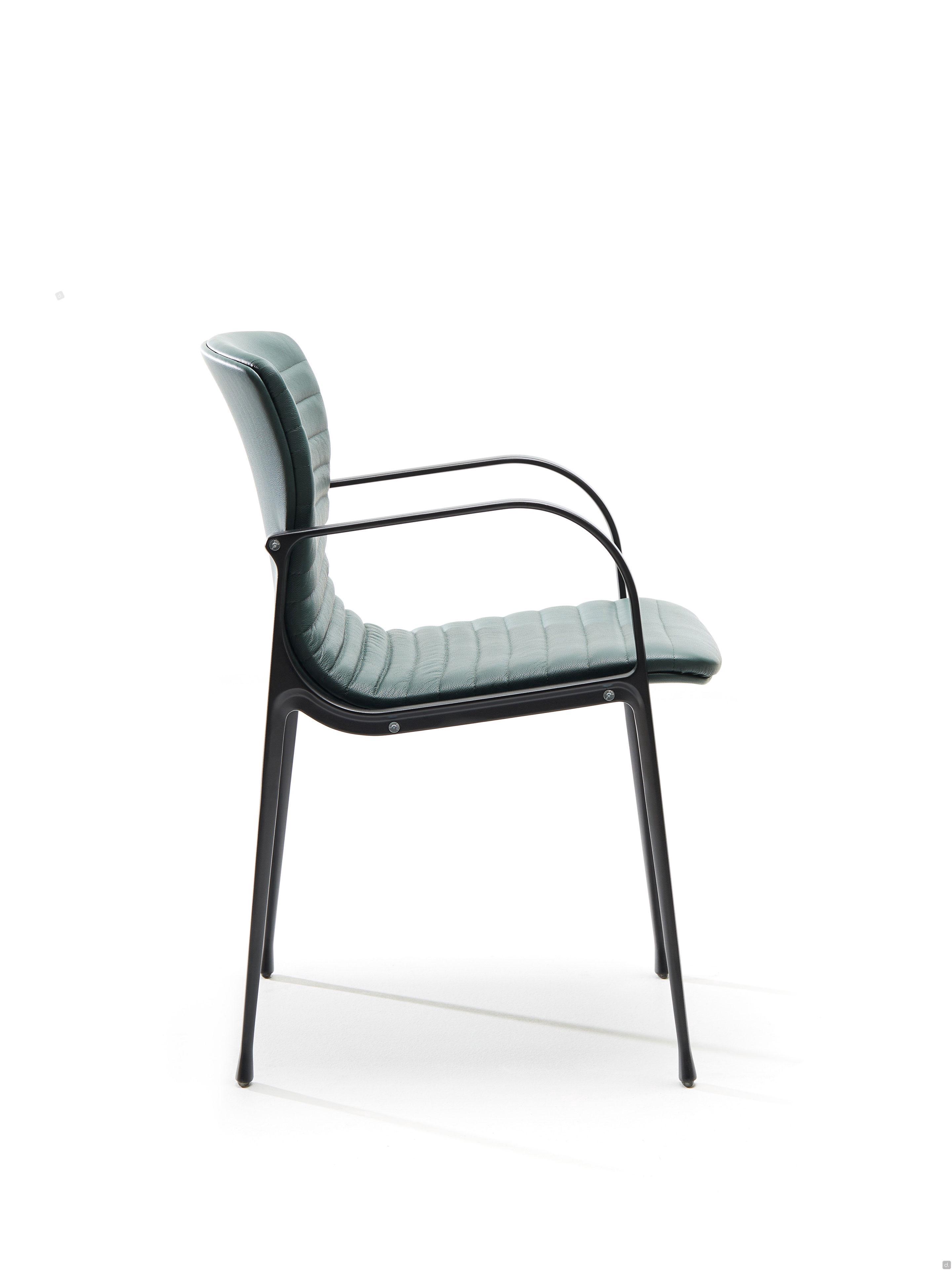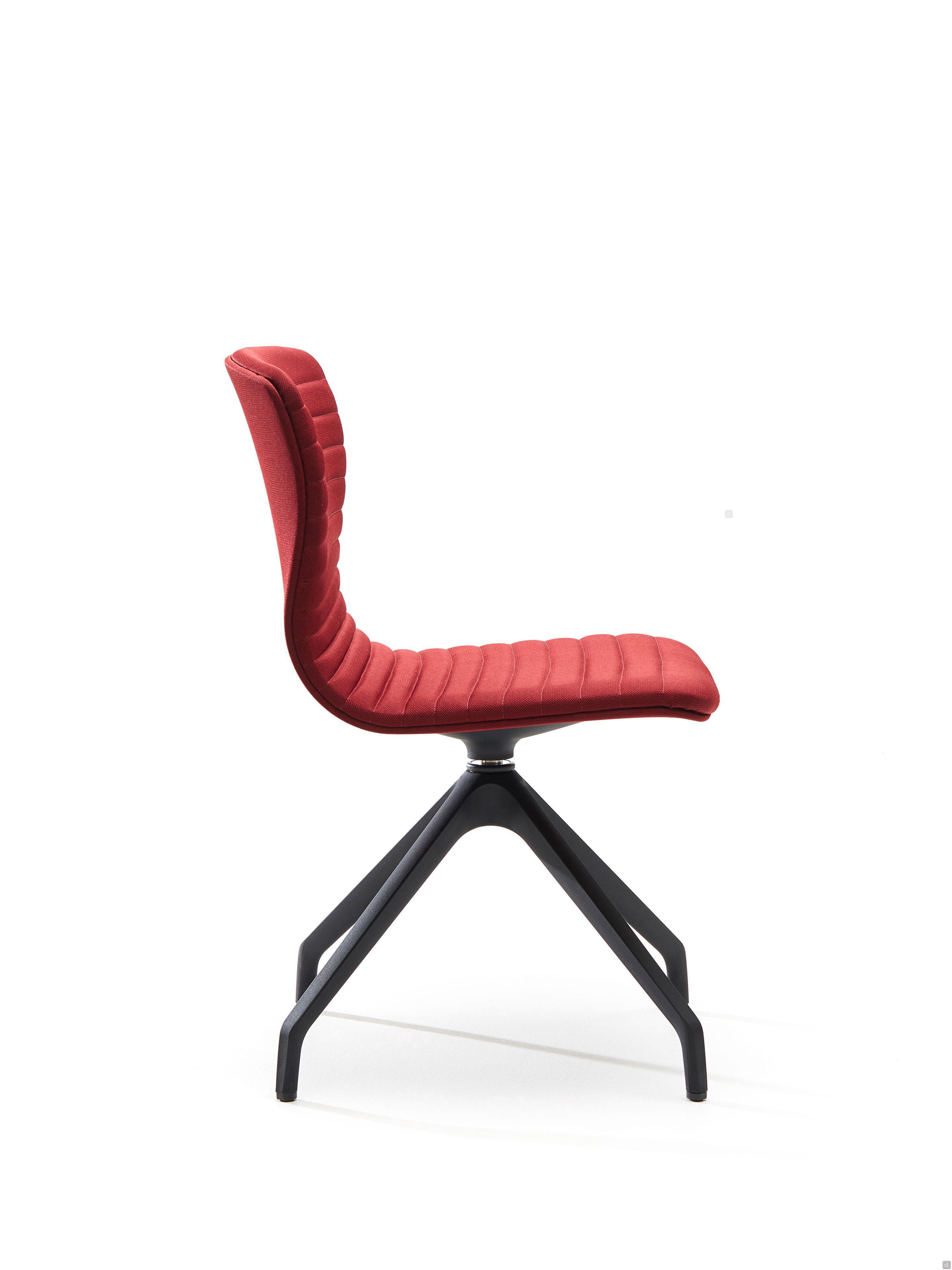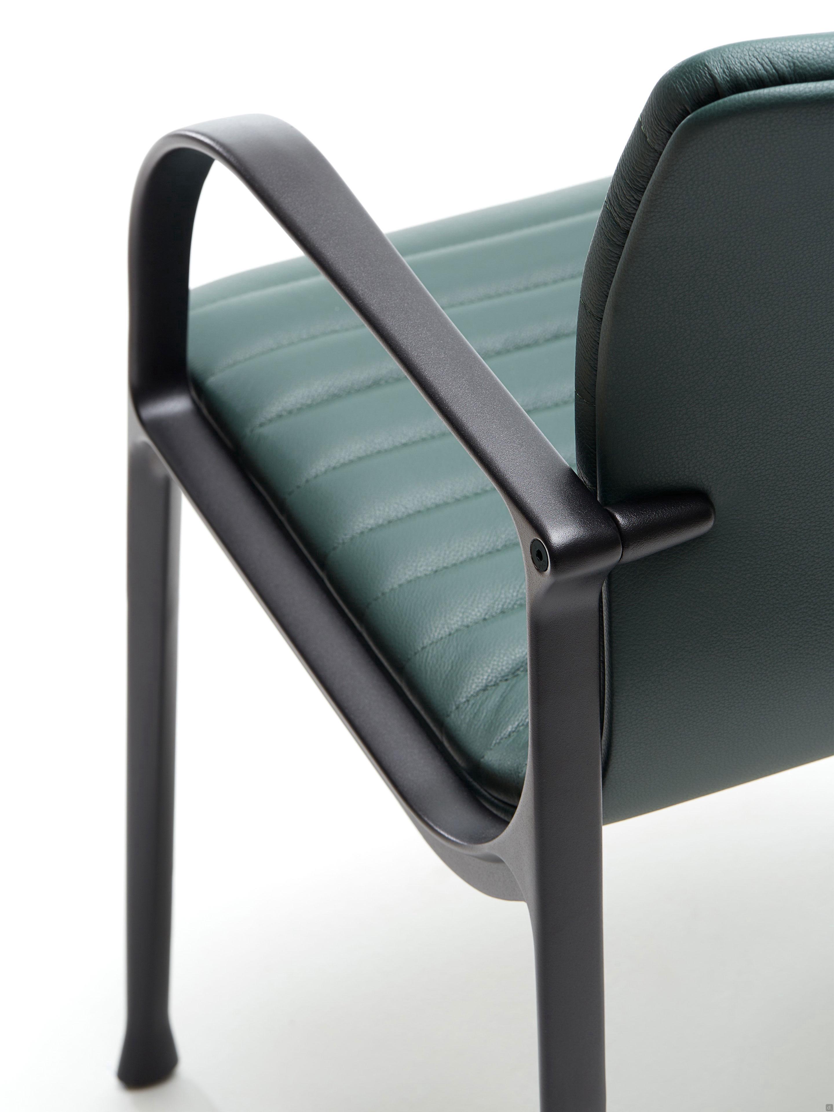 Mark est proposée pour hôte fixe avec pieds ou base en porte-à-faux, dans la version opérative avec dossier bas ou moyen et directionnel, complète d'accoudoirs fixes en tubulaire en métal ou aluminium en 4 finitions.
