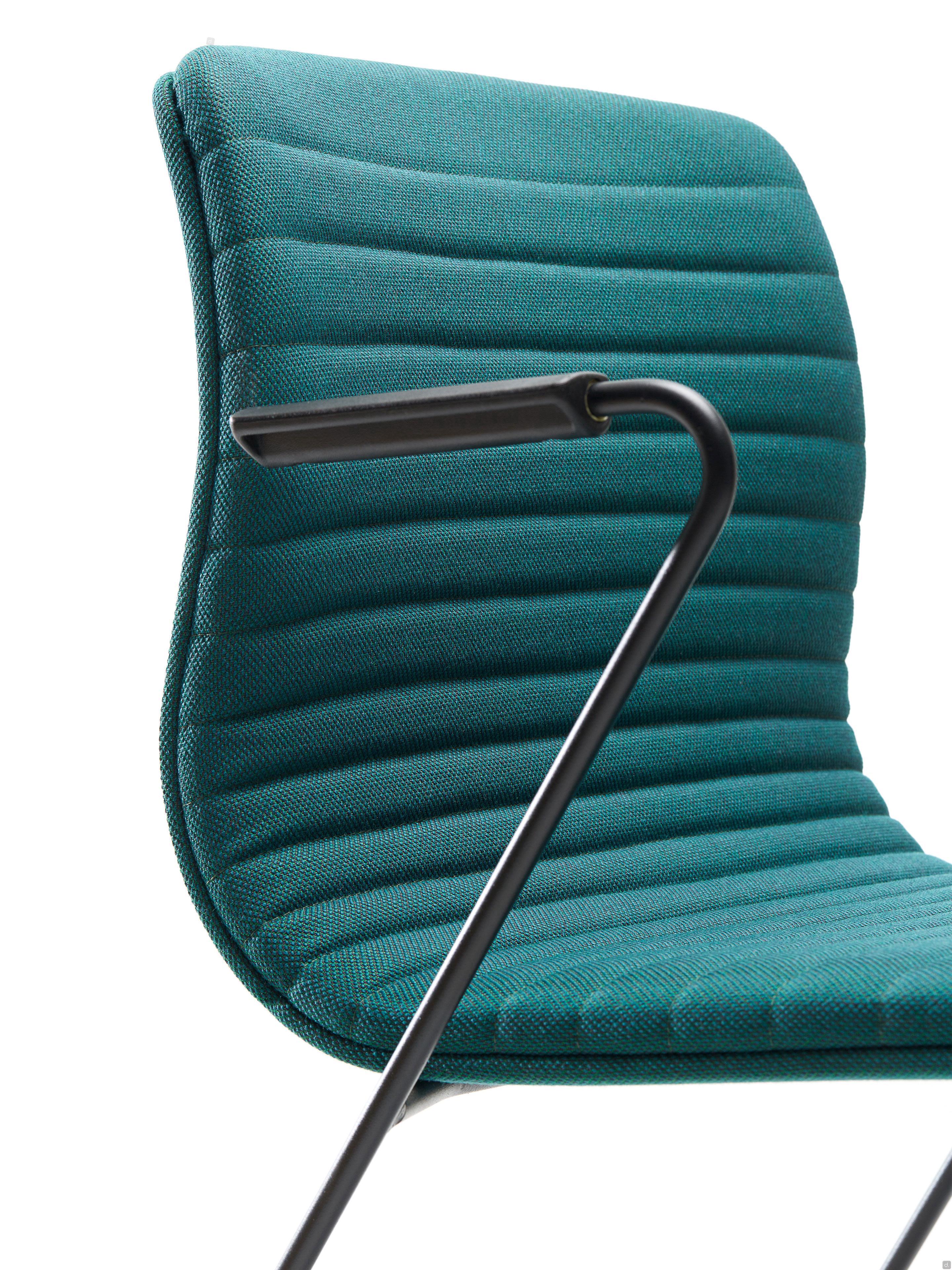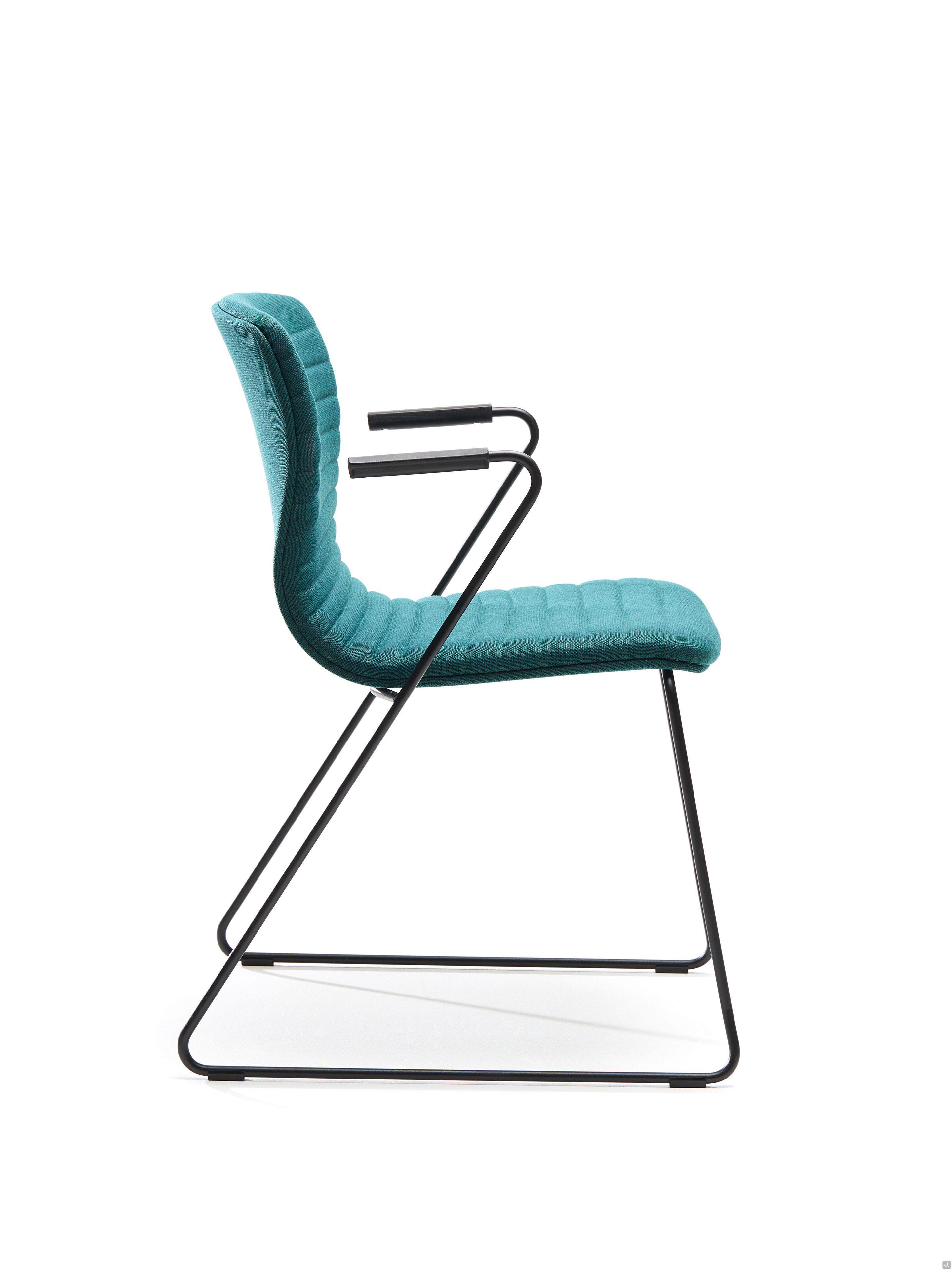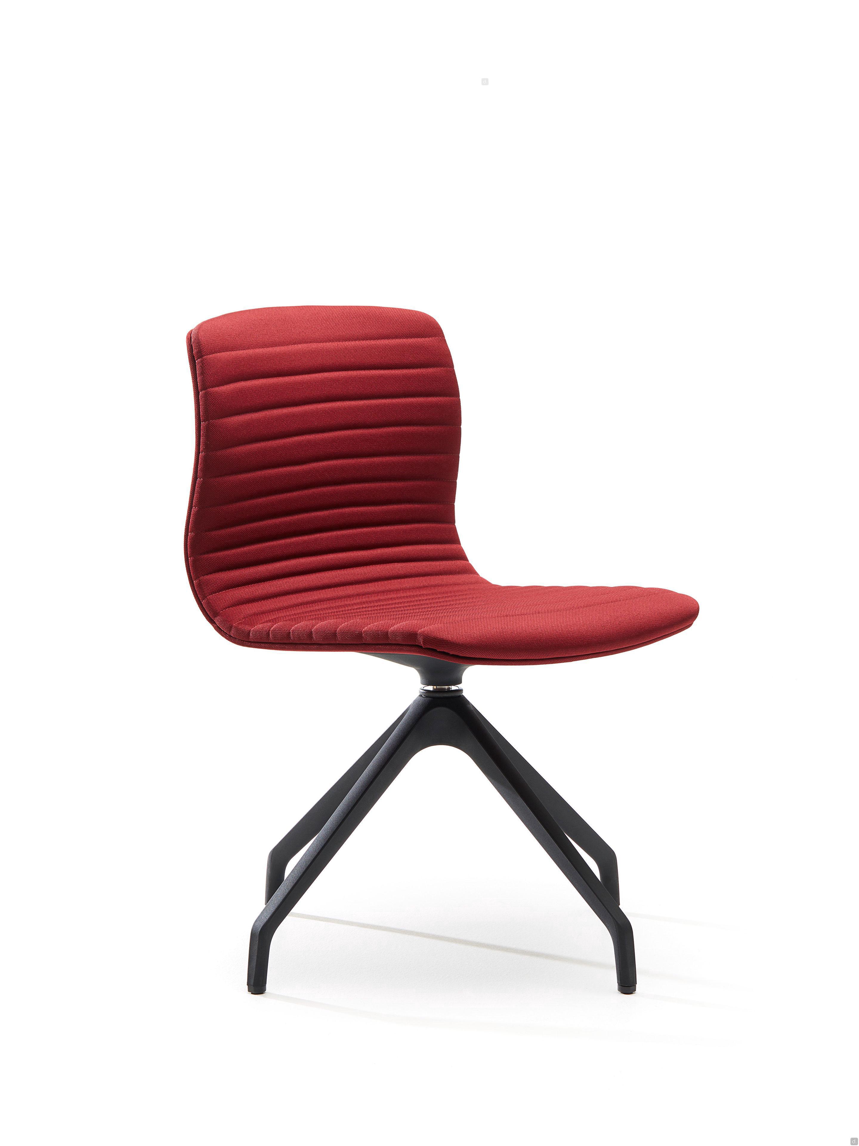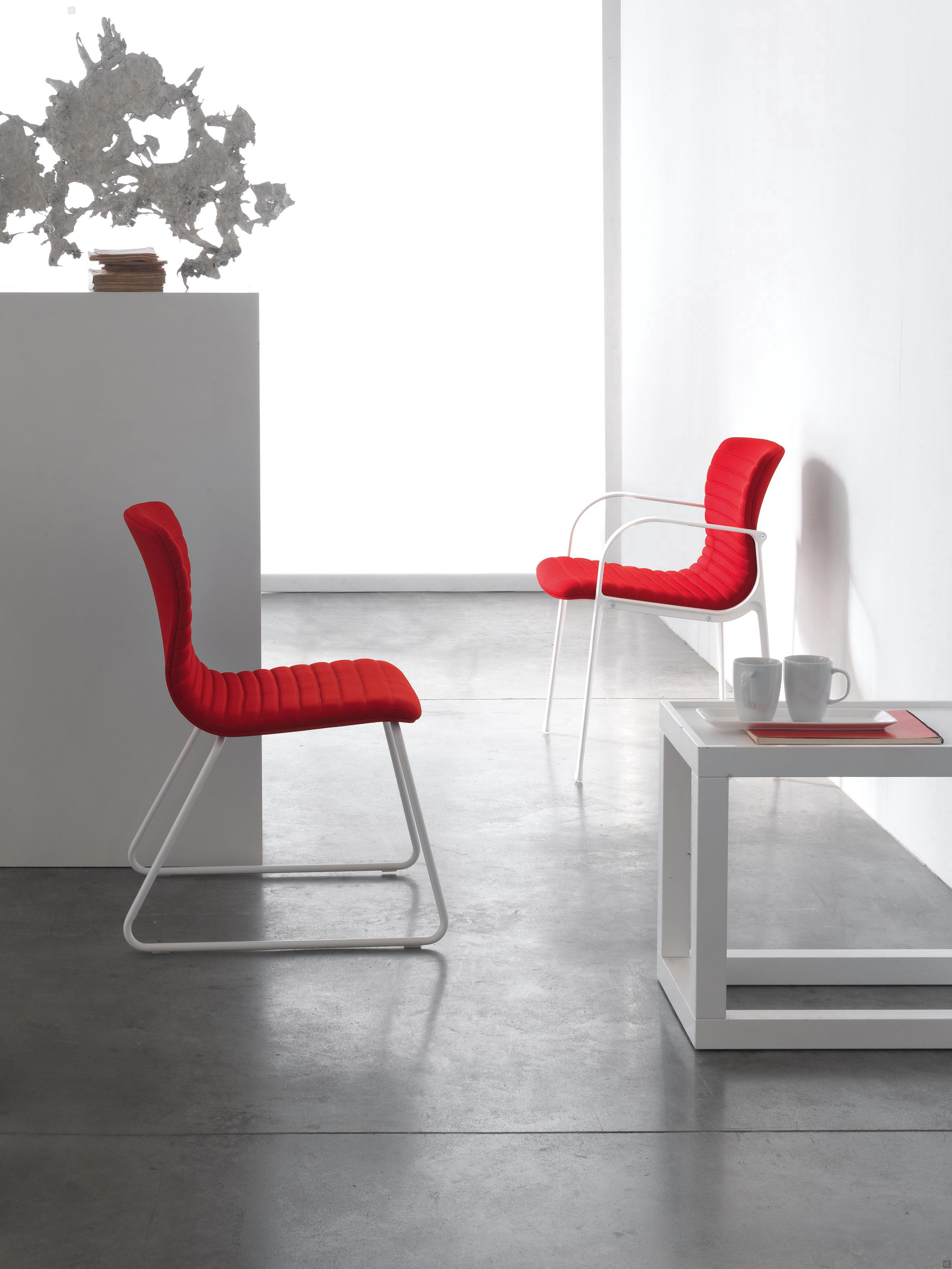 Mark est proposée pour hôte fixe avec pieds ou base en porte-à-faux, dans la version opérative avec dossier bas ou moyen et directionnel, complète d'accoudoirs fixes en tubulaire en métal ou aluminium en 4 finitions.