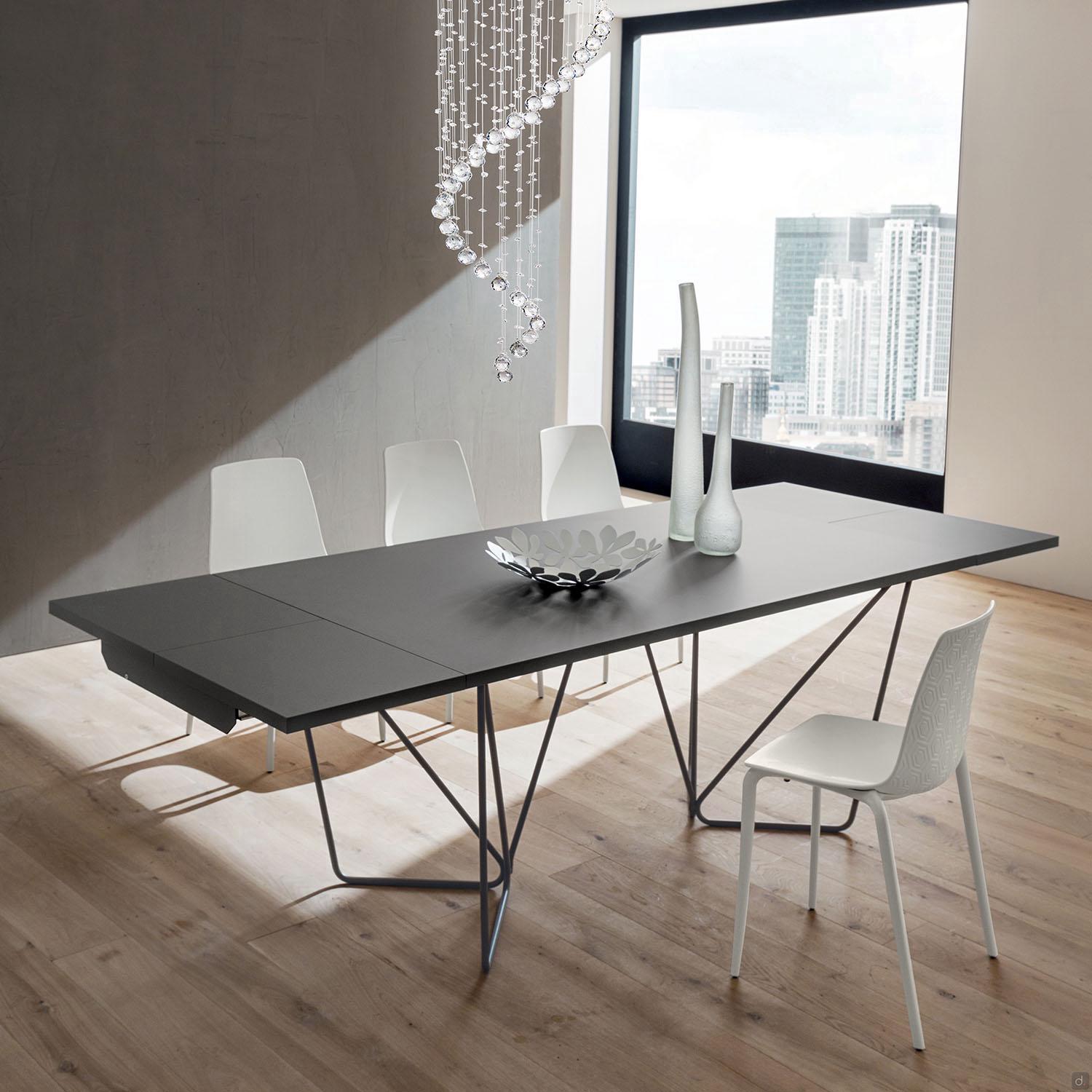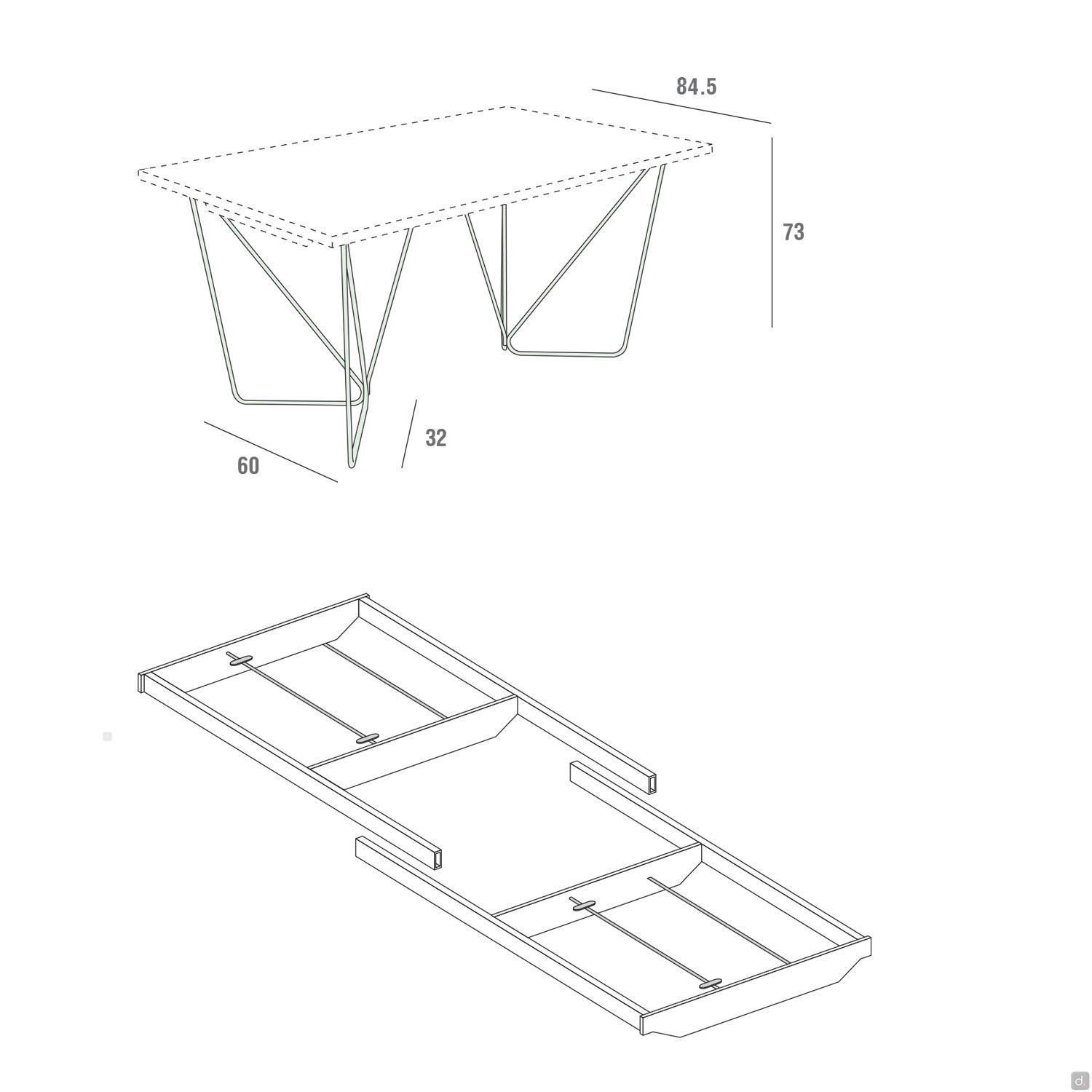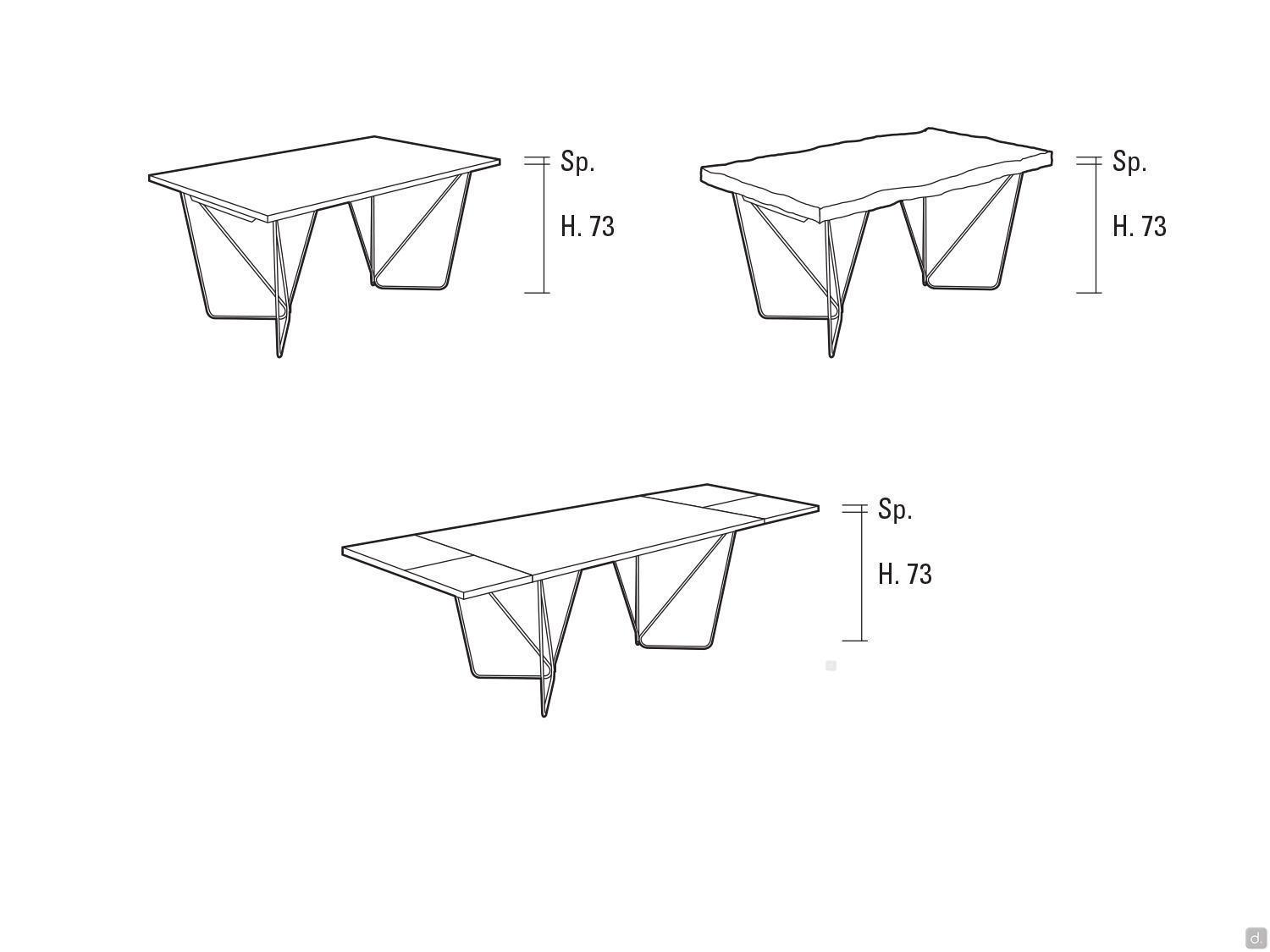 Le modèle à rallonges présente deux rallonges qui se rangent sous le plateau de 40 cm chacune, exctractibles grâce à un pratique mécanisme de rallonges réalisé en métal verni assorti aux pieds. Alastor est une table idéale pour meubler un séjour moderne, hautement personnalisable selon les exigences.
