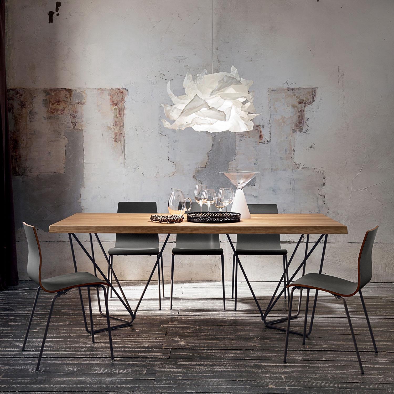 Alastor est une table de salle à manger avec pieds en tréteaux en métal verni, disponible avec plateau rectangulaire ou modelé dans deux longueurs, également en version à rallonges. Le plateau est réalisable dans de nombreuses finitions et tonalités, en mélaminé Fenix ou HPL, effet bois ou pierre, ou encore en chêne, également dans l'élaboration écorcée. Les finitions Fenix et HPL sont extrèmement résistantes et pratiques, parfaites pour l'utilisation quotidienne de la table.