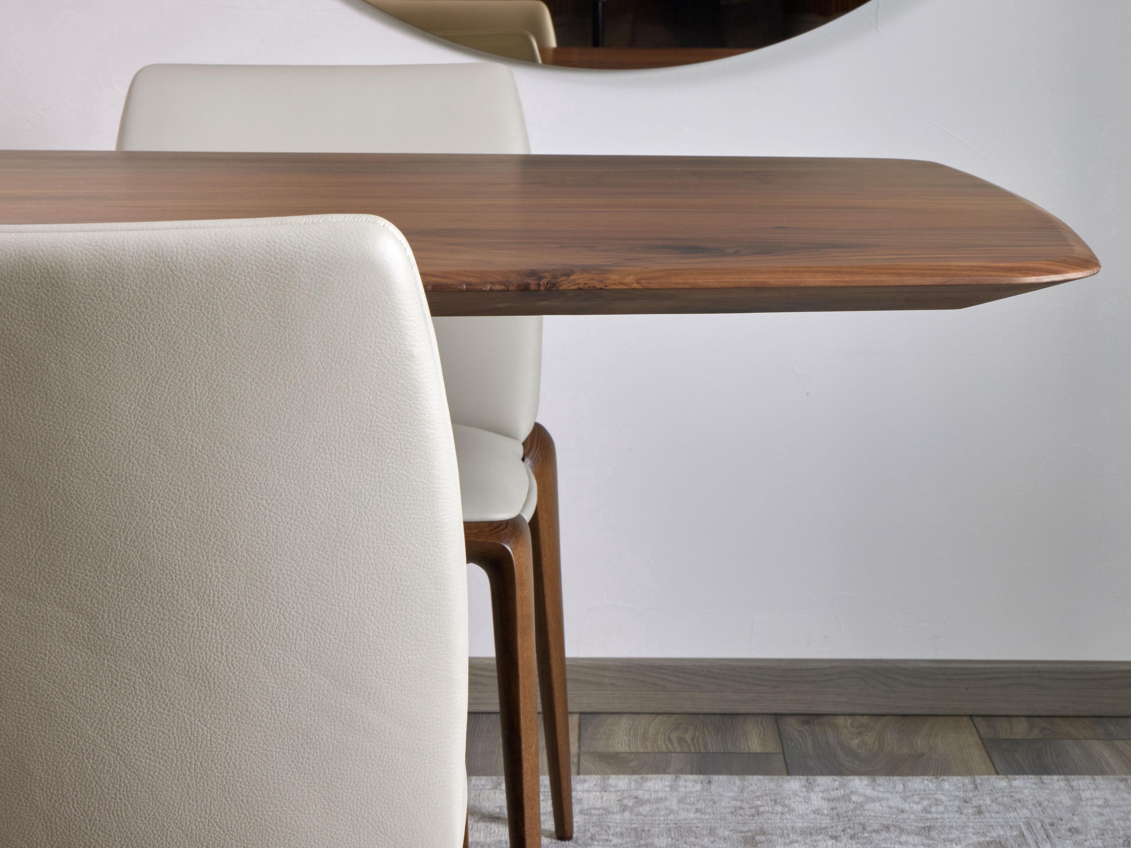 Rallonges latérales à baïonnette cachée : permettent de transformer une table fixe en table extensible. Le système prévoit que les baïonnettes de support sont "encastrées" dans l'épaisseur du plateau et extraites si nécessaire au moyen d'un système push-pull. Les rallonges, qui doivent être stockées séparément, ont chacune une largeur de 50 cm, sont de la même couleur que le plateau (la continuité de la veine est recherchée, mais n'est pas garantie) et sont fournies avec une poignée métallique pour en faciliter la manipulation. Les baïonnettes sont également en métal peint en noir.