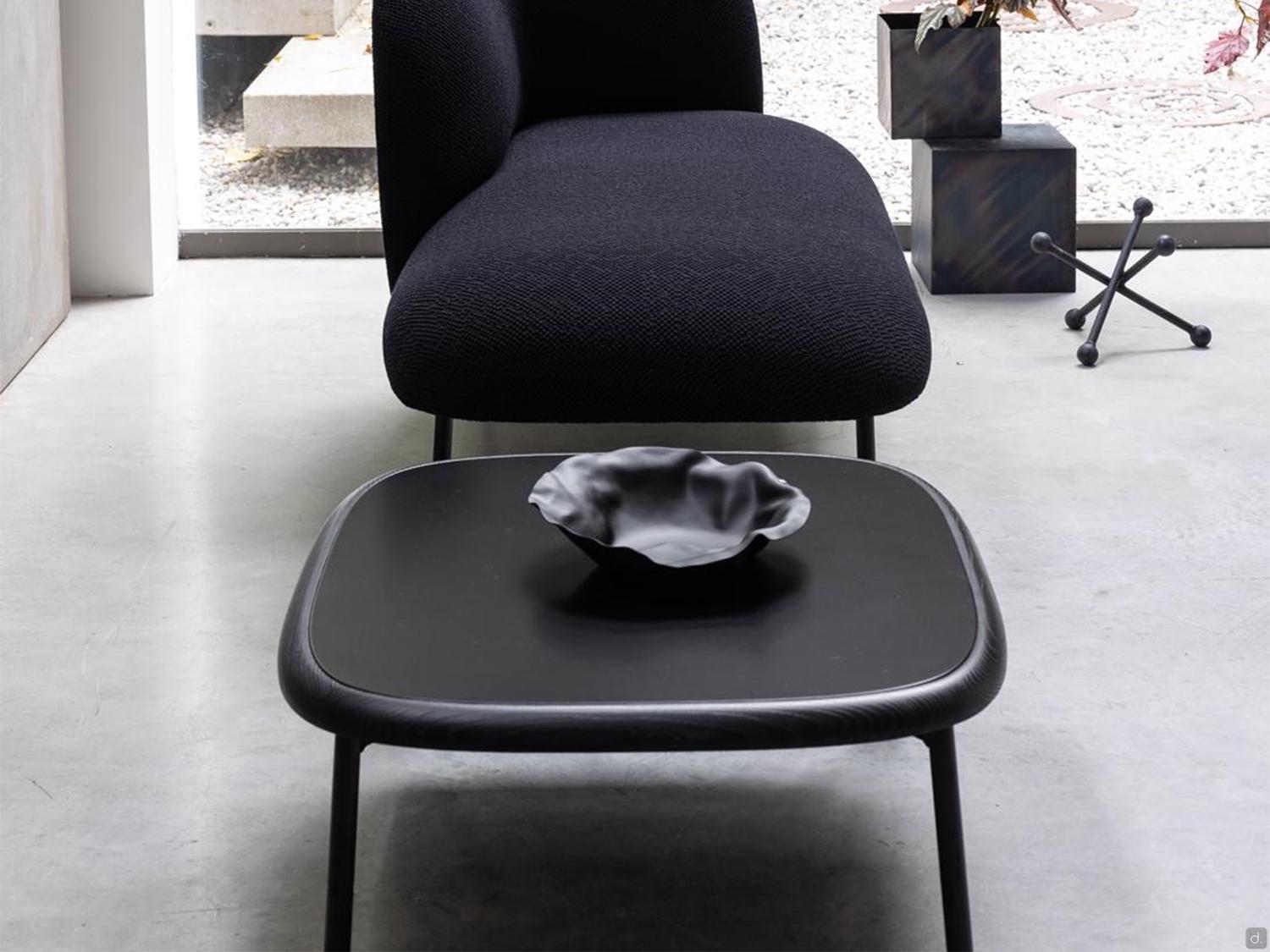 Fortune est une table basse bi-matière en frêne avec un cadre en bois massif et des pieds en métal noir ou bronze brossé. Idéale dans les espaces résidentiels mais également conçue pour les espaces publics, elle est disponible en trois dimensions pour être placée devant un canapé ou en combinaison avec la gamme du même nom. Elle est également parfaite pour créer des compositions à plusieurs éléments qui embelliront votre salon ou votre espace détente. Le ton élégant et les nombreuses finitions du plateau permettent d'agréables combinaisons de couleurs, même avec les autres meubles de la maison. À noter, le cadre du plateau en frêne massif courbé qui, s'il est choisi en contraste avec la finition du plateau, crée un agréable contraste chromatique.