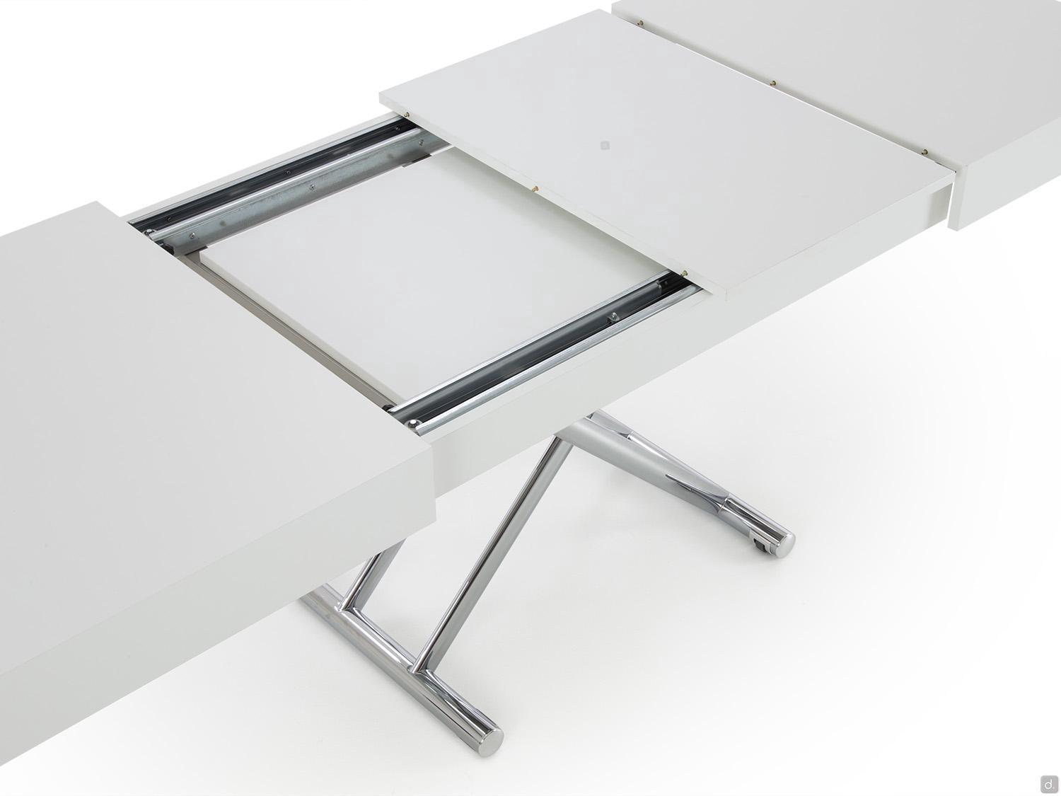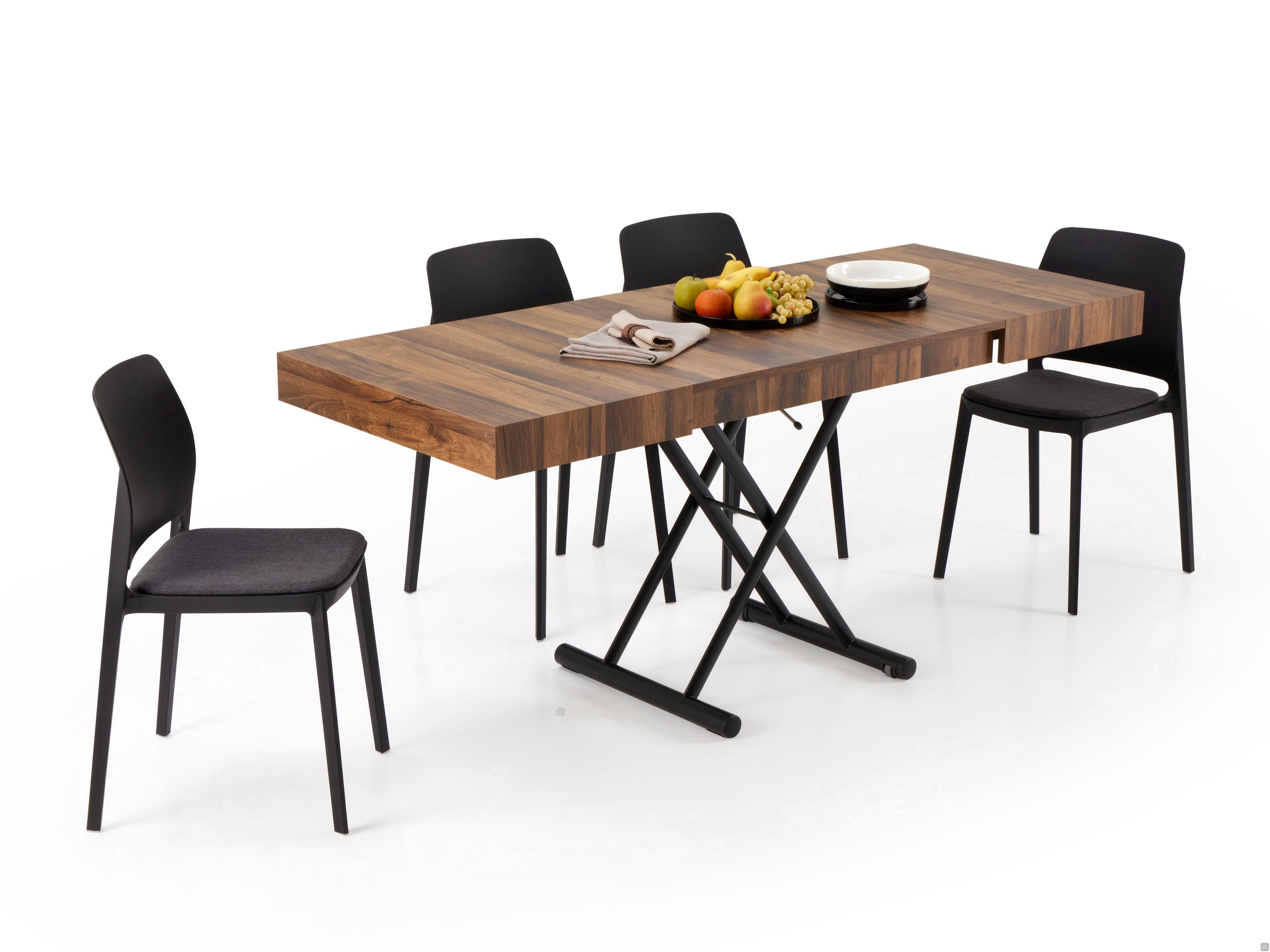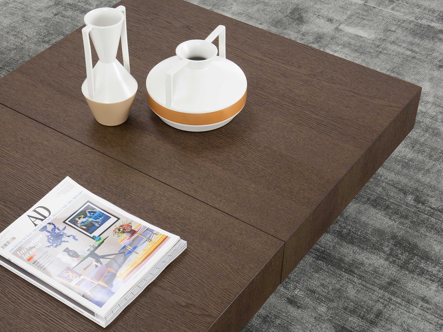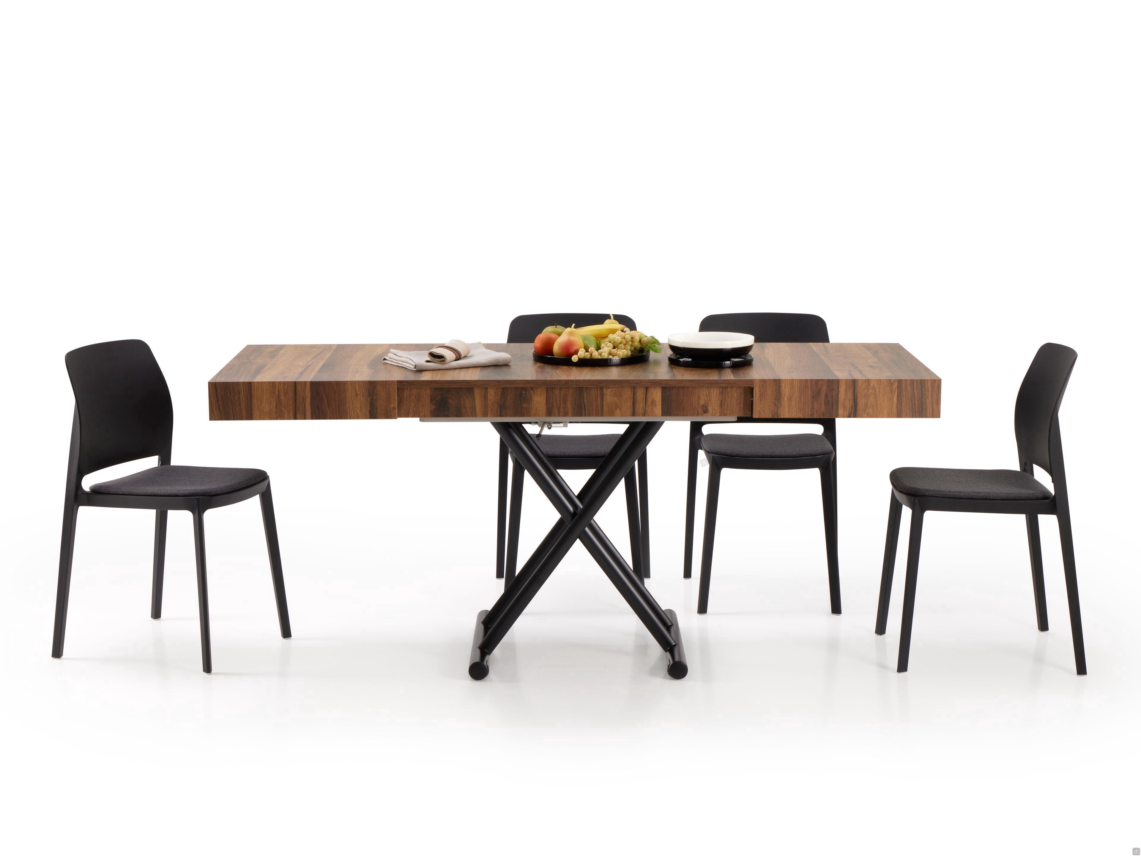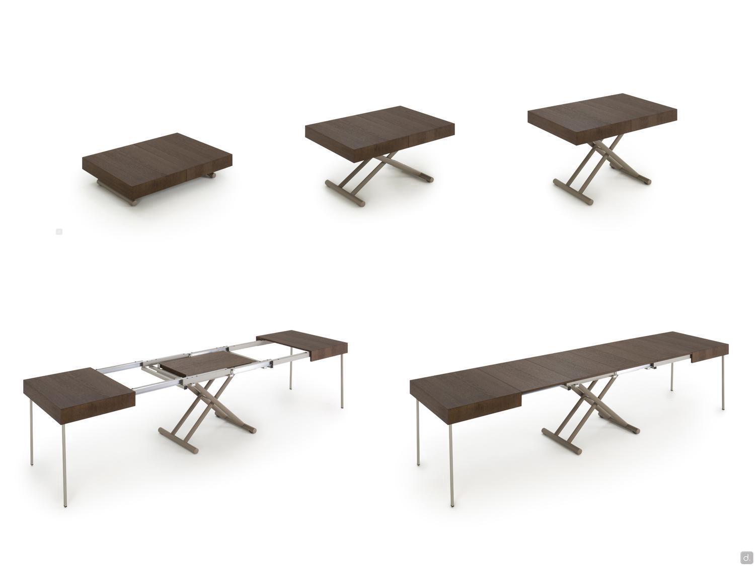 La table basse relevable et extensible Lucas dispose d'un plateau rectangulaire en bois à rallonges capable d'accueillir jusqu'à 14 personnes. Le pratique mécanisme de réhaussement avec vérin à gaz permet de régler la hauteur au millimètre en garantissant une extrême polyvalence dans son utilisation. Le mécanisme en aluminium placé sous le plateau cache deux rallonges internes prêtes à être utilisées.Grâce à la variété de finitions et matériaux, Lucas s'adapte avec la même efficacité dans les intérieurs modernes et classiques et représente une solution gain d'espace optimale pour accueillir les invités.Le plateau est disponible en différentes finitions de chêne, dans une sélection de couleurs RAL dans la version en laqué mat et laqué à pores ouverts, en différentes résines effet béton à l'aspect texturé et dans une ample gamme de mélaminés; la structure peut être en acier verni ou en différentes typologies de coloris.