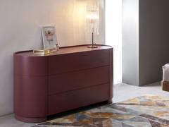 Chariot est une table de chevet ronde à 2 tiroirs, entièrement laquée en mat, brillant ou micalisé ; les lignes courbes dominent toute la collection, caractérisée par une extrême propreté formelle obtenue par l'absence de poignées appliquées, grâce à l'utilisation d'une "prise" sur le premier tiroir en haut, avec fermeture assistée, et d'un push-pull sur tous les autres.
