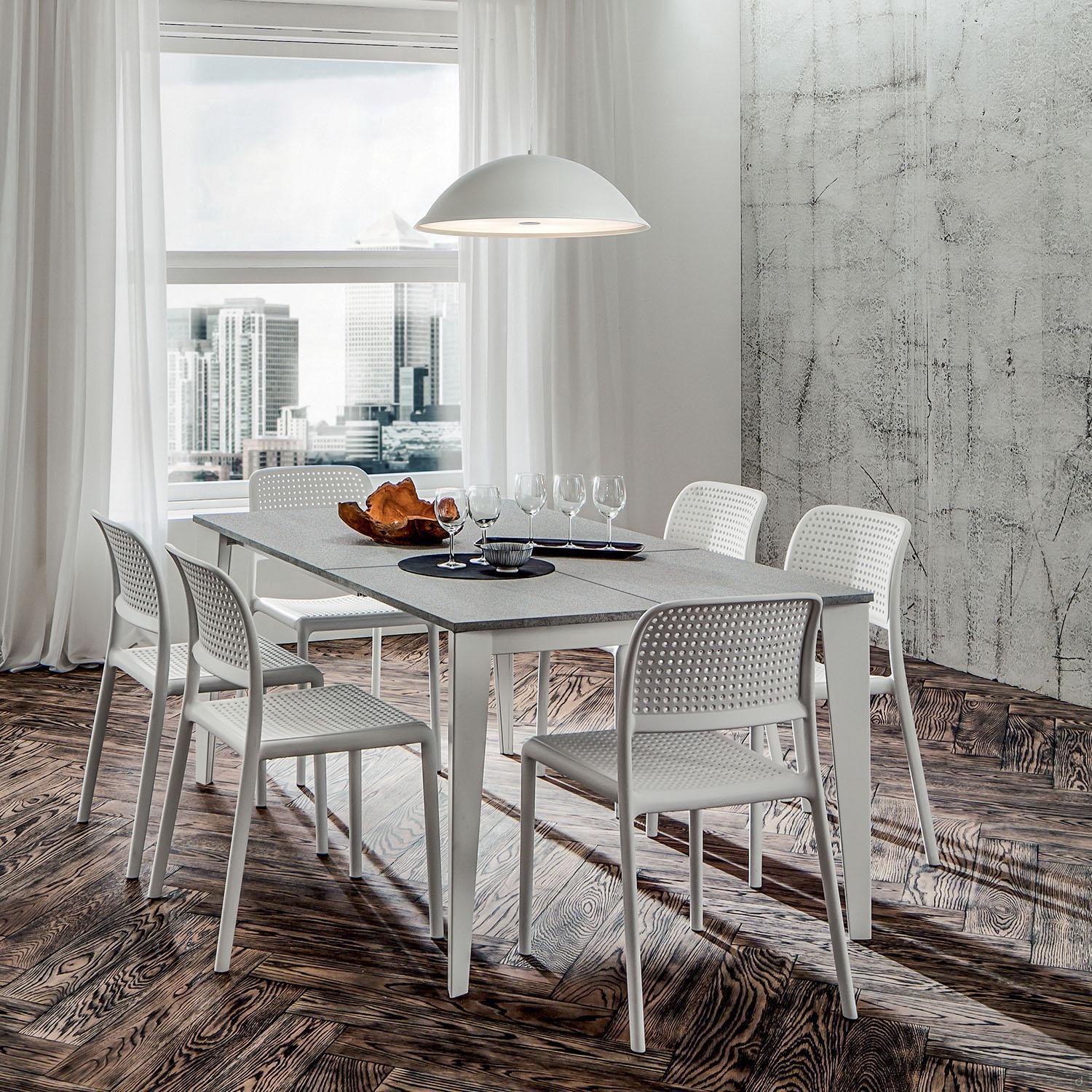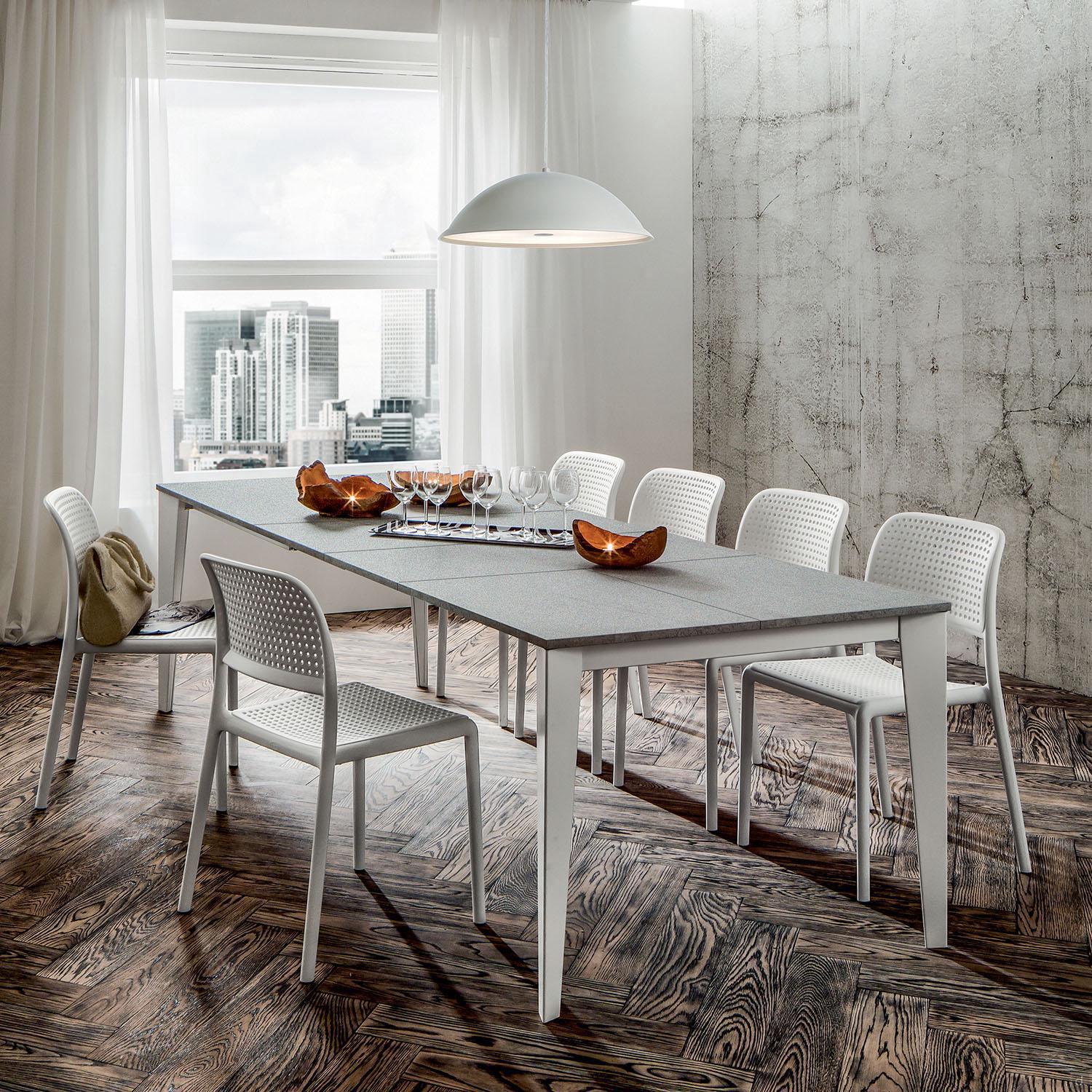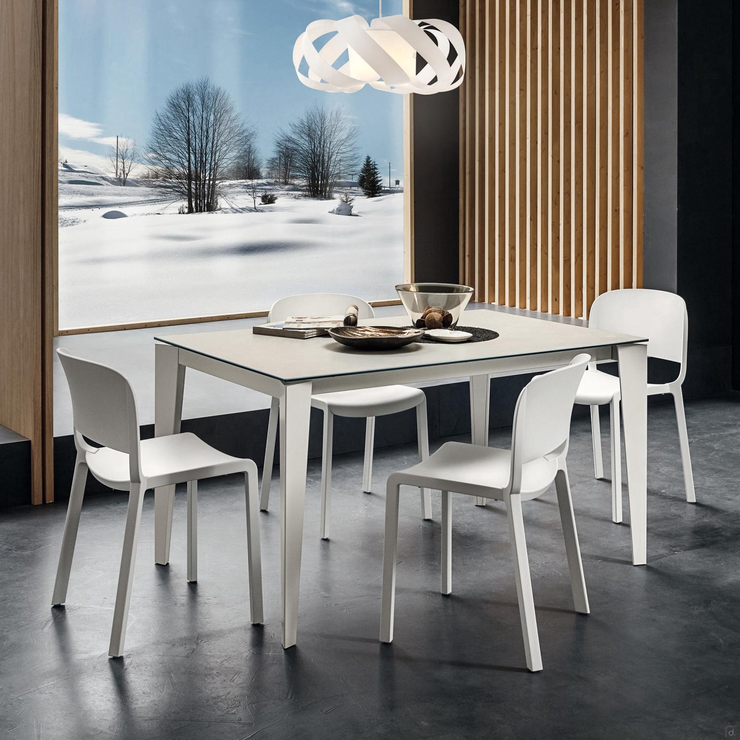 Modesty est une table de repas extensible, disponible en modèle rectangulaire à 120, 138, 140 ou 160 cm ou en modèle carré à 100 cm extensible jusqu'à 252 cm. Chaque modèle rectangulaire est disponible également fixe, avec un plateau en mélaminé HPL, Fenix ou en verre laqué brillant blanc avec sous-plateau mélaminé assorti.La structure est réalisée en métal verni avec des poudres époxy et proposée dans des tons blanc, gris ou marron, pour créer des solutions assorties (par exemple le plateau en mélaminé Fenix) ou en contraste. Modesty est une table essentielle, idéale pour compléter une salle à manger aux lignes modernes.