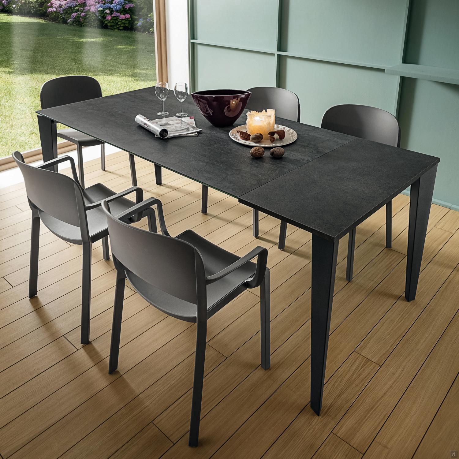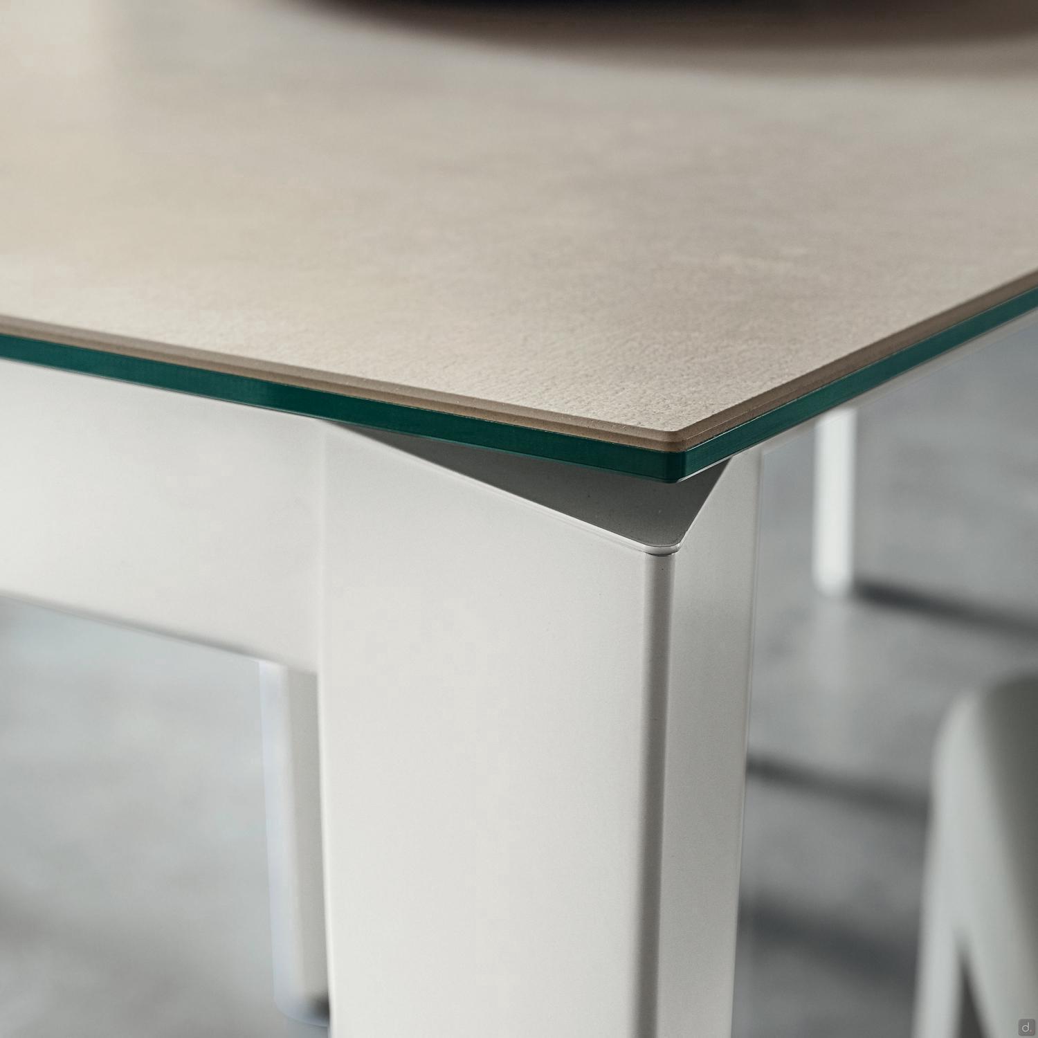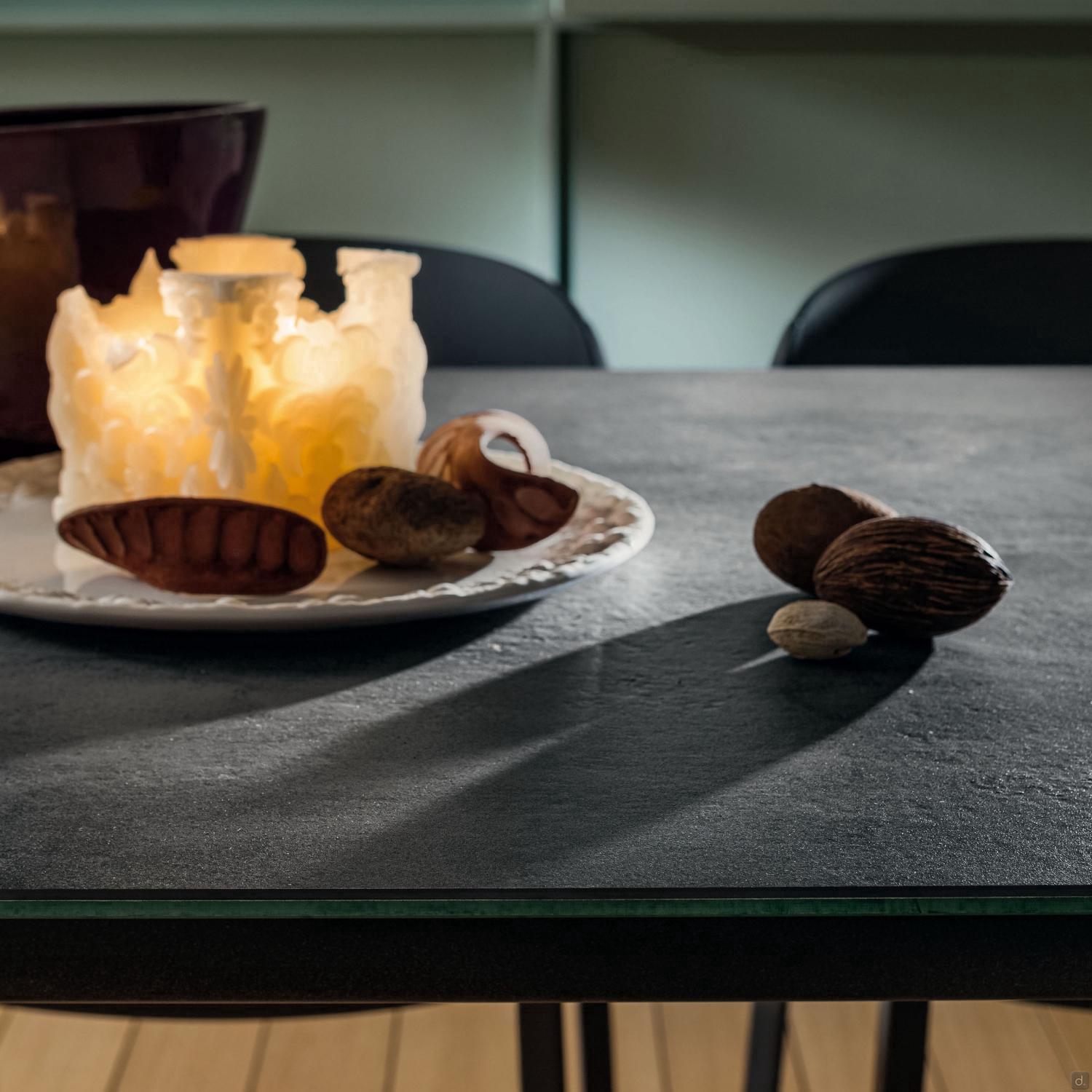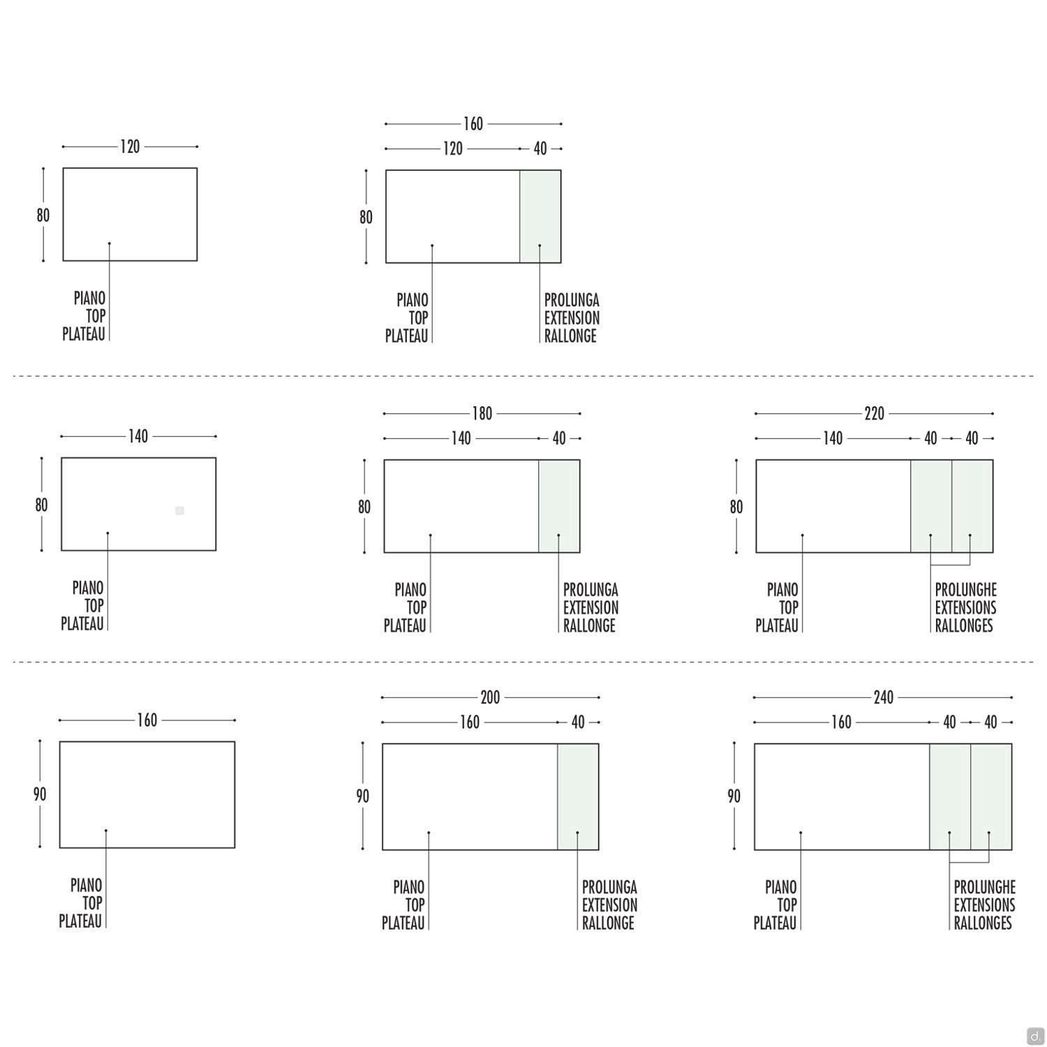 DimensionsHauteur: H.75 cmÉpaisseur Plateau: ép.2 cmMatériaux et FinitionsPlateau et Rallonges:- mélaminé HPL / Fenix- verre trempé laqué brillant (avec rallonges en mélaminé HPL)Structure:- métal verniInfo pour l'AchatPour les finitions à effet bois ou pierre, il n'y a pas de continuité de veinure entre le plateau et les rallonges.Le plateau en verre laqué brillant dispose d'un support en mélaminé blanc assorti; les rallonges sont réalisées en mélaminé HPL dans toutes les couleurs présentes dans nos Échantillons. Le modèle carré à rallonges de 100 (166 - 209 - 252) cm présente une rallonge rabattable extractible de 66 cm placée sous le plateau et deux rallonges de 43 cm conservées dans une pochette à part. Tous les autres modèles à rallonges présentent des rallonges extractibles placées sous le plateau.
