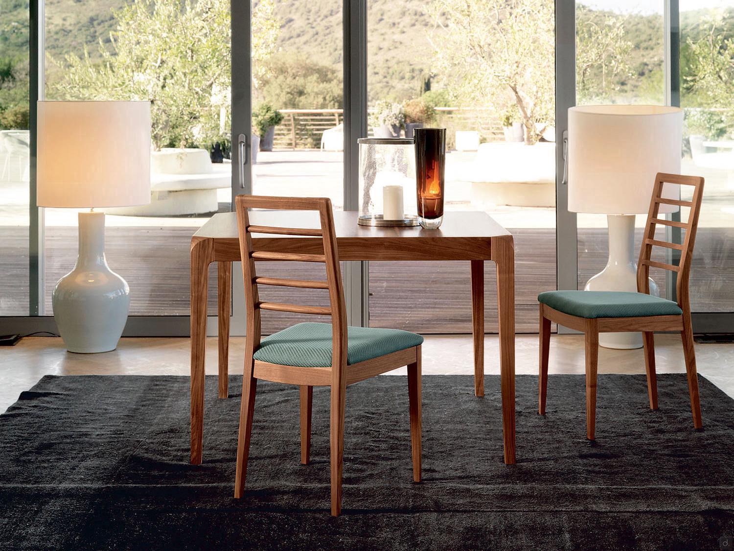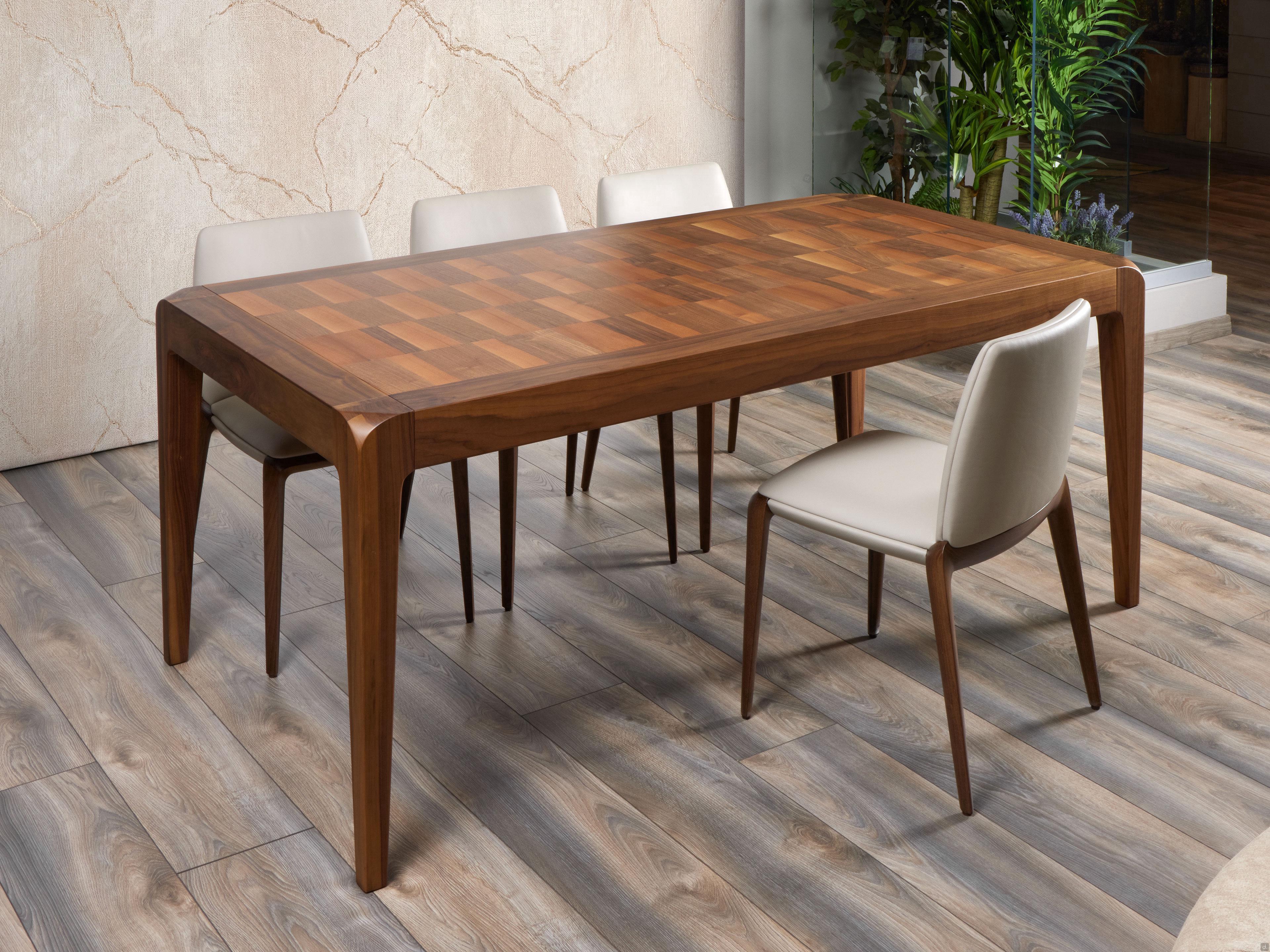 Daiki est une table extensible en bois massif décoré, disponible en modèle carré ou rectangulaire. Le plateau est réalisé en bois lamellé, avec une particulière réalisation intarsia décorative qui en caractérise le design. Les angles de la structure en bois massif arrondis démontrent le soin apporté aux détails et la précision de la réalisation. Daiki est une table en bois essentiel, idéale dans un intérieur moderne tout comme dans un séjour plus classique.