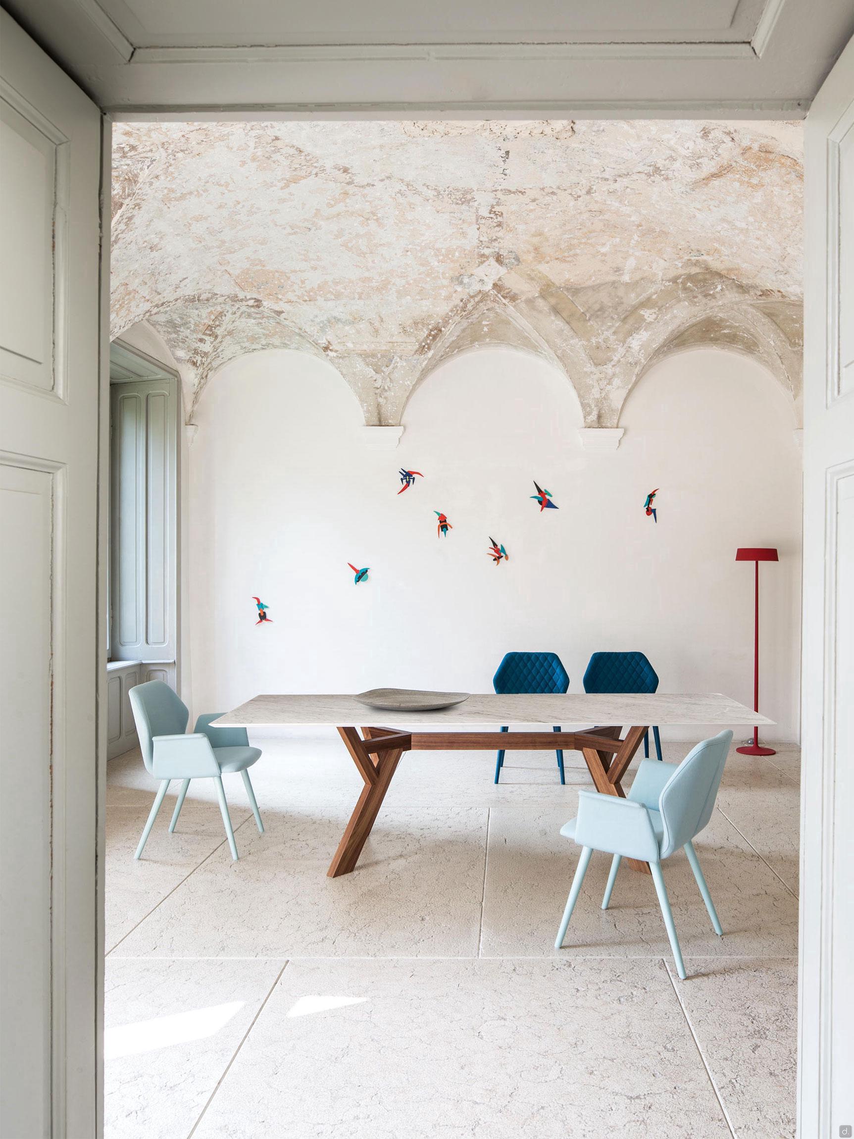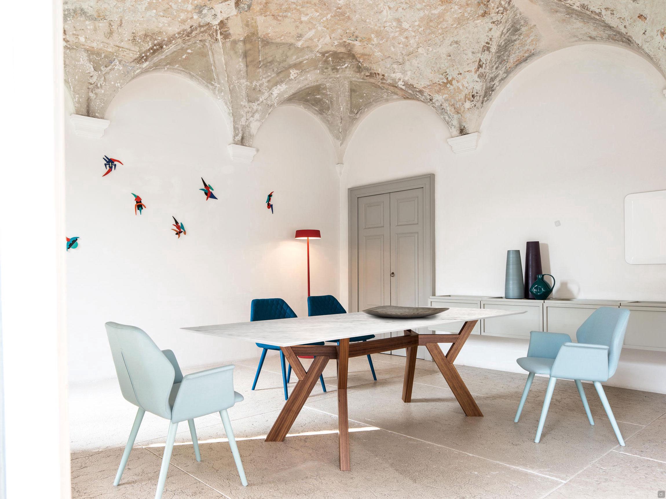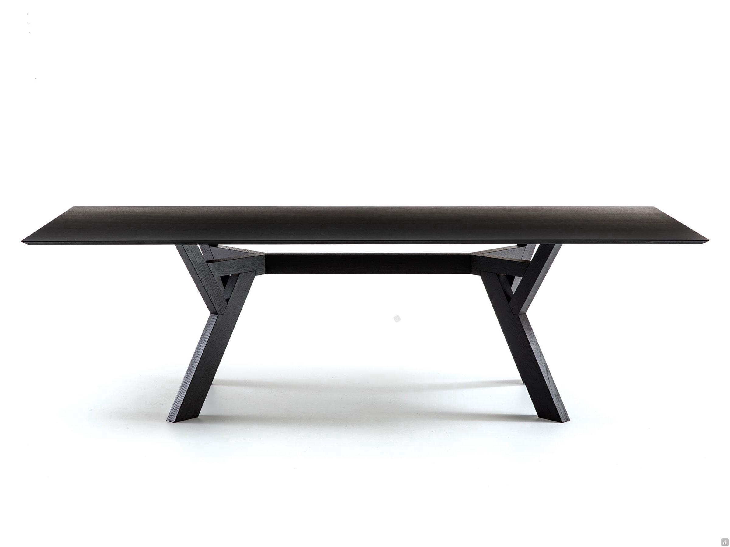 Larkin est une table de salle à manger en bois massif disponible en version ronde avec un diamètre de 130 ou 160 cm, ou rectangulaire avec une longueur de 220, 250, 280 ou 300 cm, pouvant accueillir confortablement jusqu'à 12 personnes.Un élément caractéristique est sa base sculpturale en noyer canaletto massif ou en chêne teinté ou laqué à pores ouverts, inspirée du monde de l'architecture et des charpentes en bois. Le plan assorti est proposé dans différents matériaux, ce qui permet d'obtenir différents effets : le plan en verre transparent est parfait pour faire ressortir les formes sculpturales de la structure, qui reste visible même d'en haut ; le plan assorti au piétement, le bois devenant le véritable protagoniste de la pièce ; enfin, le plan en marbre blanc de Carrara pour un contraste élégant.Grâce aux nombreuses combinaisons de tailles et de finitions, la table Larkin trouve sa place idéale dans toute salle de séjour moderne, ainsi que dans des salles de réunion de bureaux contemporains.