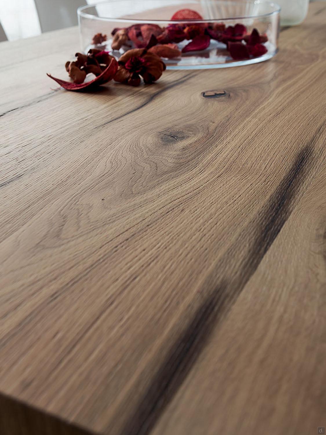 Chêne écorcé: réalisé avec un panneau en aggloméré plaqué bois avec les bords externes en bois massif de chêne.