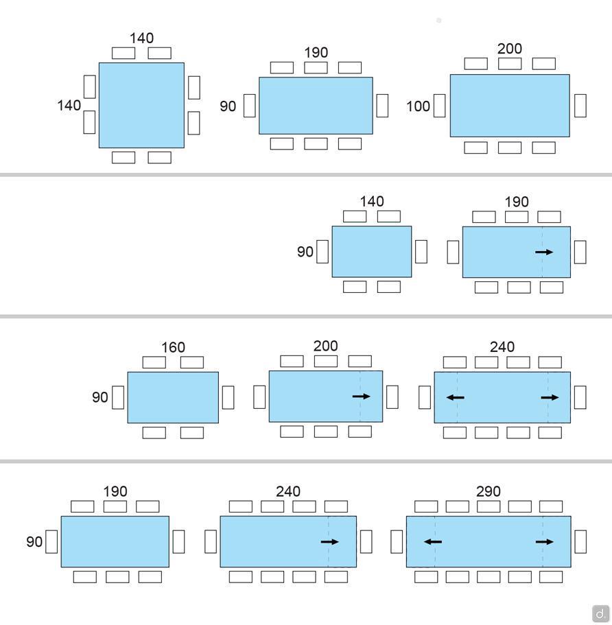 Caractéristiques Techniques et EquipementEpaisseur plateau: 2 cm. Réalisé en verre sérigraphié poli sur les bords.Structure: en métal taillé au laser et courbé; polissage effectué manuellement.Pieds en forme de sabres: réalisés en fonte d'aluminium. Du côté des rallonges, les pieds sont dotés de roulettes encastrées sur des petits coussins revêtus de façon à faciliter l'exctraction de la rallonge (système breveté).Rallonges latérales escamotables: pour la table 140 x 90 cm, 1 rallonge de 50 cm; pour la table 190 x 90 cm, 2 rallonges de 50 cm; pour la table 160 x 90 cm, 2 rallonges de 40 cm. Pour tous les modèles et quelle que soit la finition du plateau, les rallonges sont réalisées en bois laqué brillant crême.