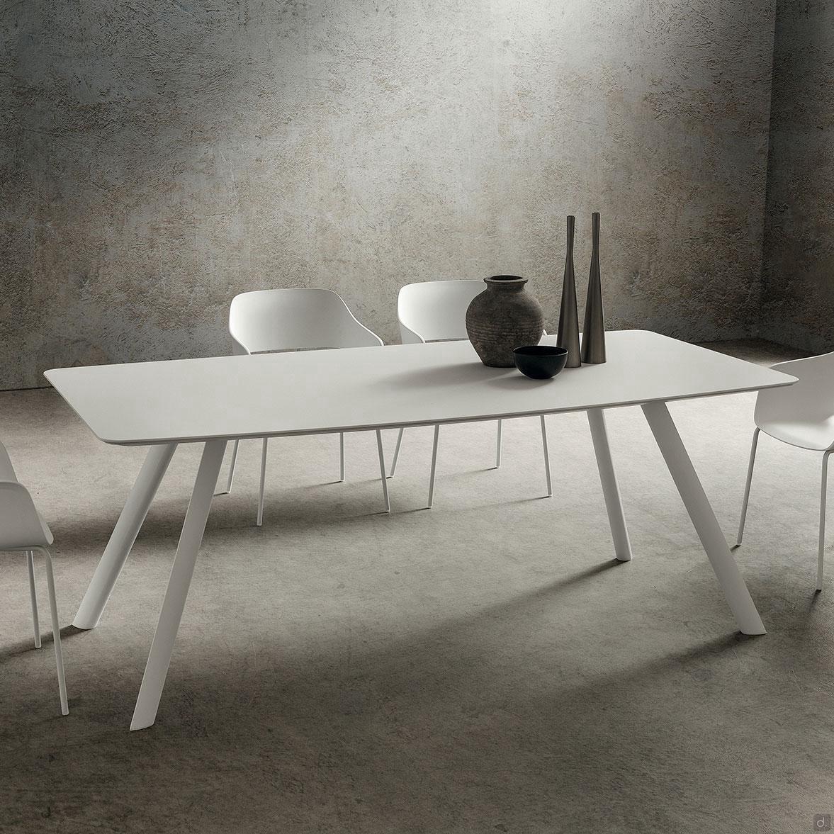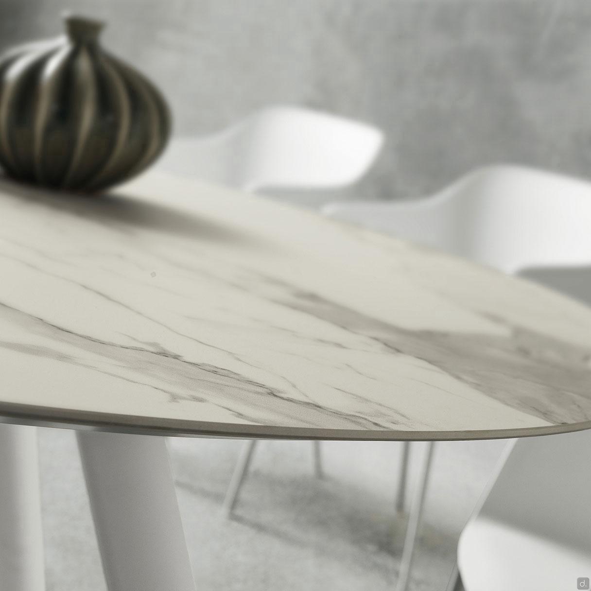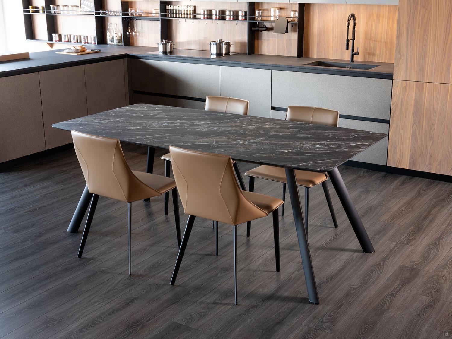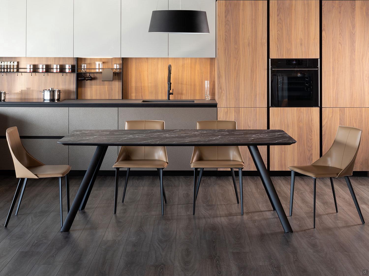 Jason est une table de salle à manger extensible moderne à six places, proposée avec plateau rond, ovale, rectangulaire ou arrondi dans une grande variété de finitions, allant du pratique mélaminé HPL ou Fenix à la pierre céramique résistante de la marque Laminam, en passant par le charme et la chaleur du bois de chêne . La version à plateau rectangulaire se distingue par son plateau en bois avec des bords en chêne massif ou en noyer écorcé, d'une épaisseur importante de 5 cm. La large gamme de plateaux et de matériaux est complétée par 4 pieds inclinés laqués à la poudre époxy ou en aluminium brossé et anodisé, qui confèrent à la table Jason un design contemporain et informel, idéal dans les salles à manger modernes et jeunes. La gamme est complétée par des modèles extensibles de 170 et 200 cm, pouvant atteindre 250 et 280 cm grâce à deux rallonges latérales en stratifié HPL ou Fenix, toujours assorties au plateau.