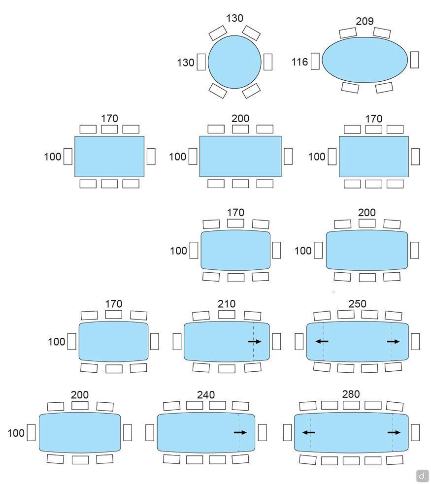 table à manger ovale, ronde ou rectangulaire fixe pour 6 personnes