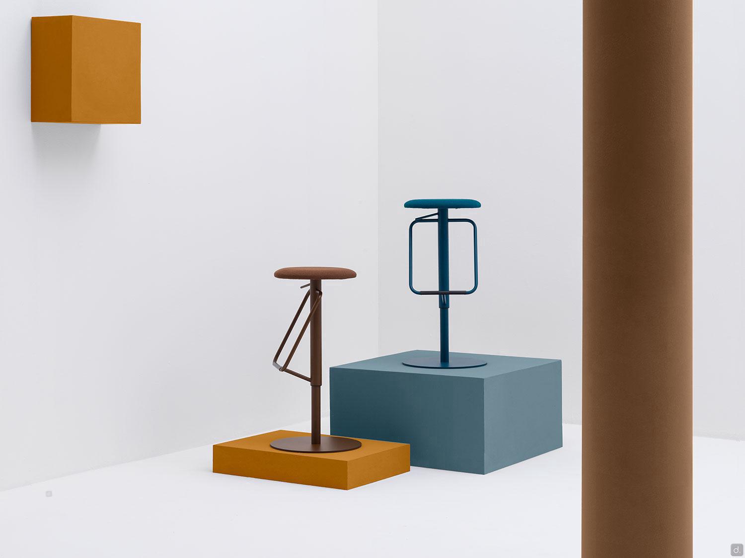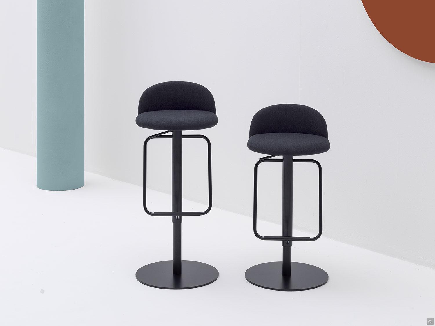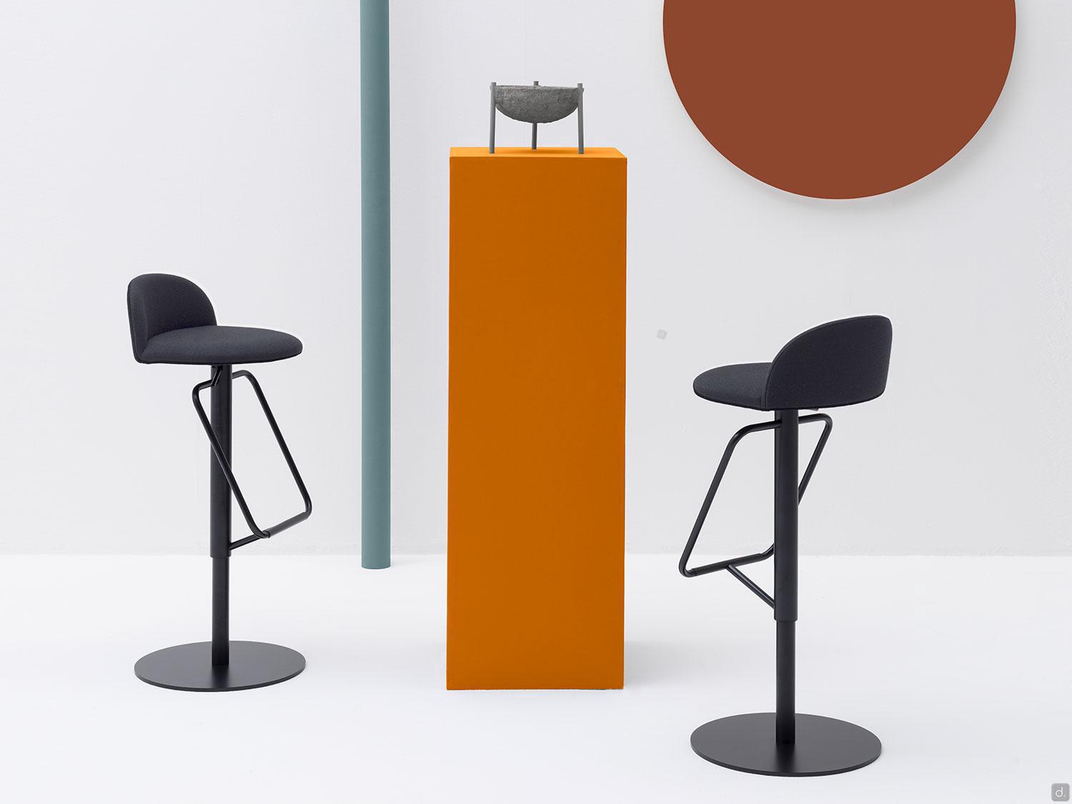 Newton est un tabouret avec une base à colonne centrale réglable en hauteur, idéal pour le plan de travail d'une cuisine ouverte, en îlot ou avec comptoir. Son siège pivotant, avec ou sans dossier, est rembourré et recouvert de cuir ou de tissu, avec des surpiqûres ton sur ton.La base métallique est réalisée avec une finition peinte en noir ou laquée. Pour un plus grand confort d'assise, le repose-pieds, en plus d'avoir une valeur pratique et fonctionnelle, est un détail qui attire l'attention. Le design du tabouret Newton est moderne, léger et minimaliste.