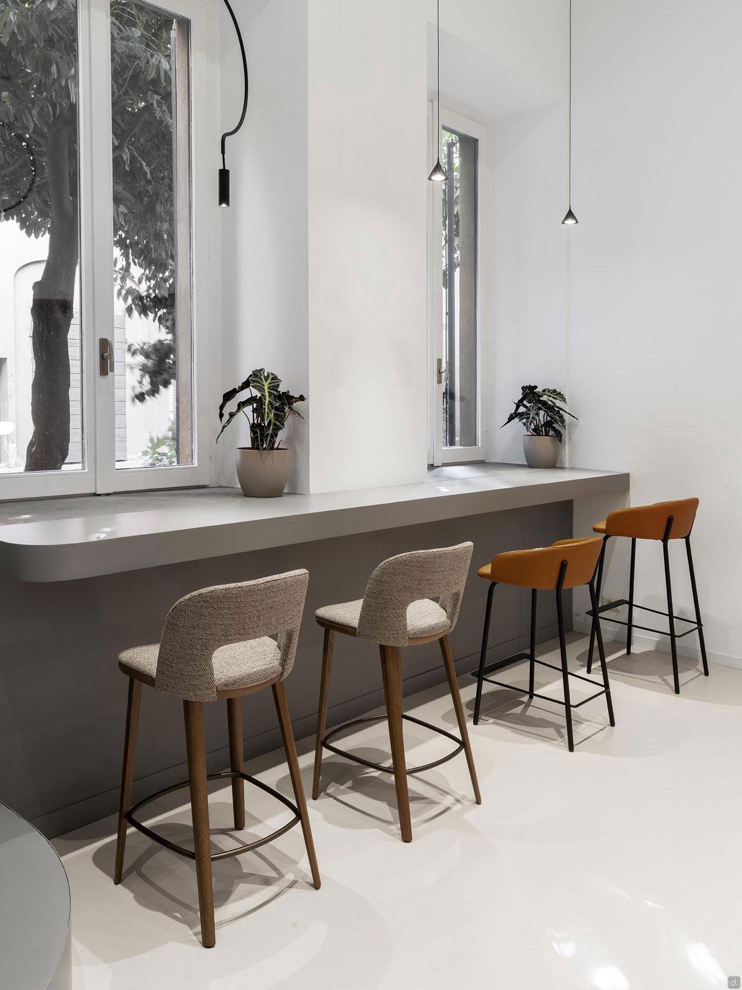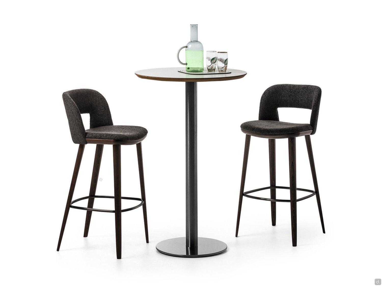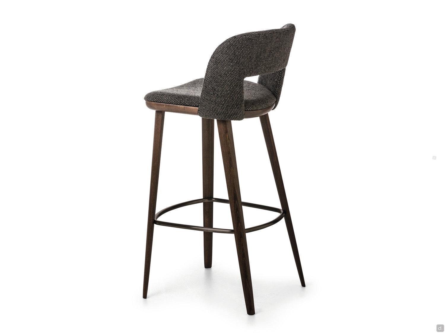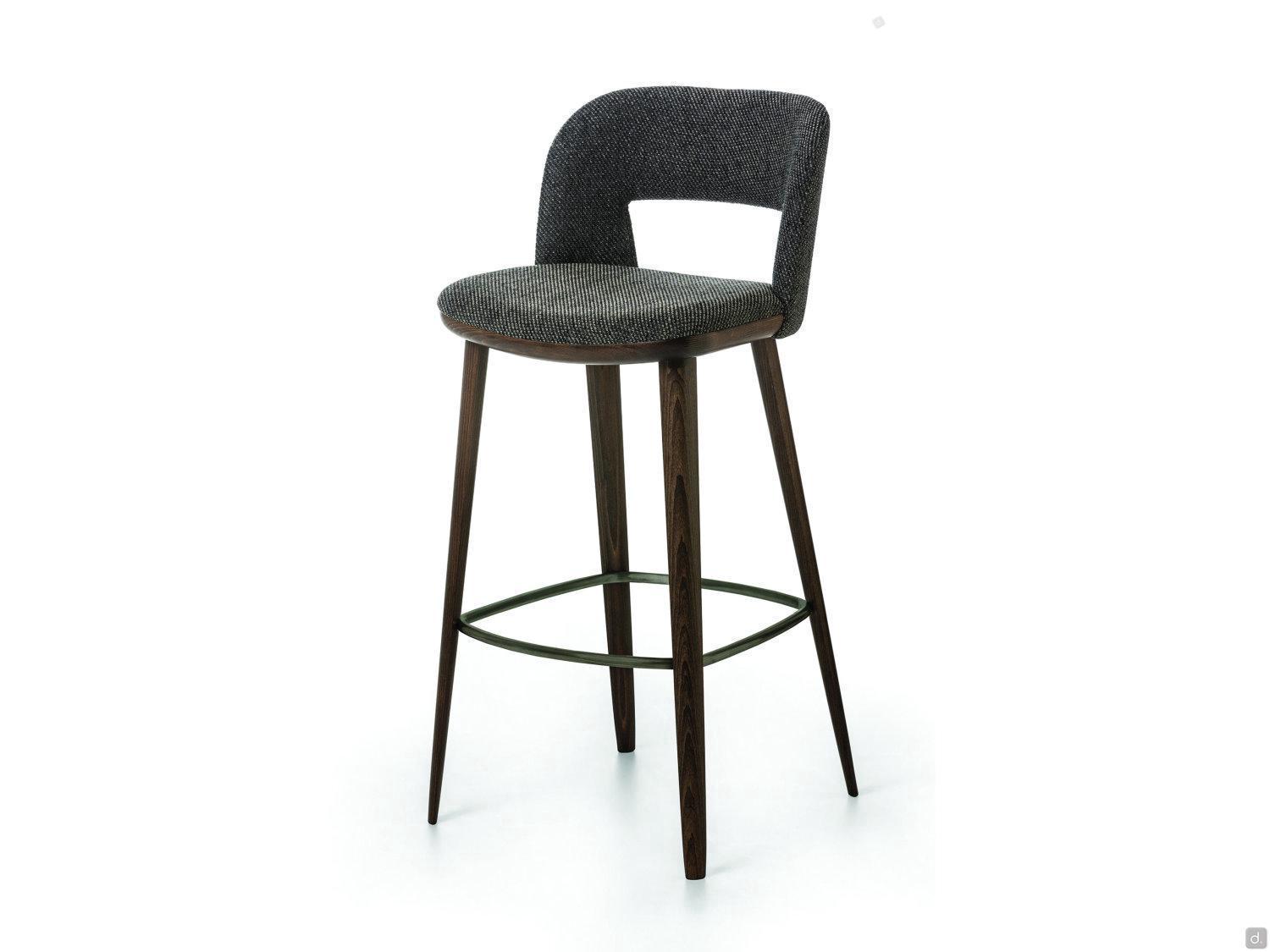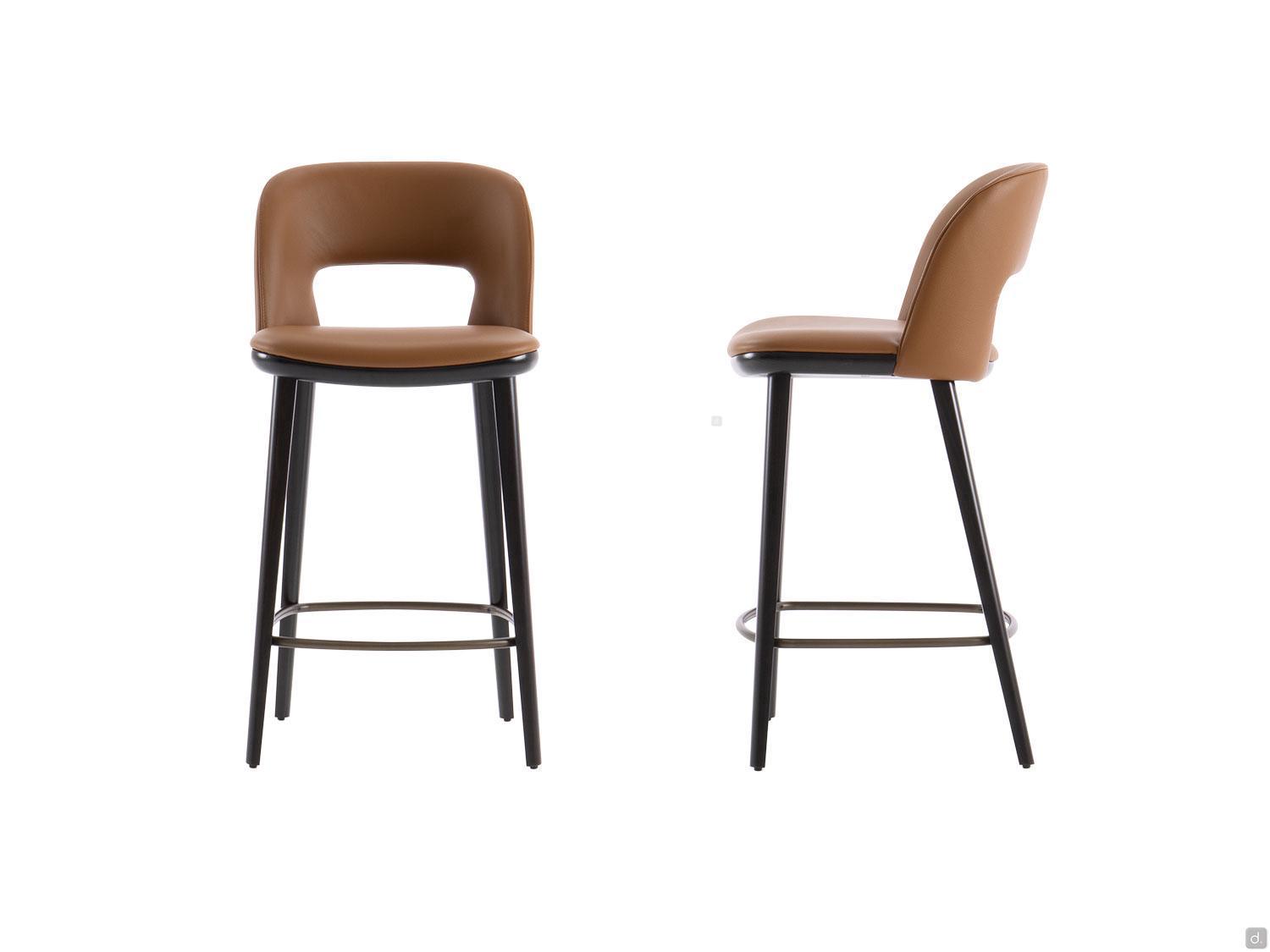 Vence est un tabouret élégant avec dossier haut, proposé en deux versions: pour la cuisine et pour le bar, la deuxième est plus haute. L'assise est très confortable, surtout grâce au dossier rembourré et profilé qui supporte votre dos agréablement et cet aspect vous permet d'utiliser ce tabouret aussi pour des dîners ou des apéritifs. Les pieds inclinés et fuselés en bois de frêne soutiennent l'assise composée par un profil visible en bois et d'un coussin rembourré. Ils sont équipés aussi d'un repose-pieds en métal finition bronze. Le revêtement de l'assise et du dossier est proposé en tissu, simili-cuir , velours et cuir en plusieurs couleurs et textures.