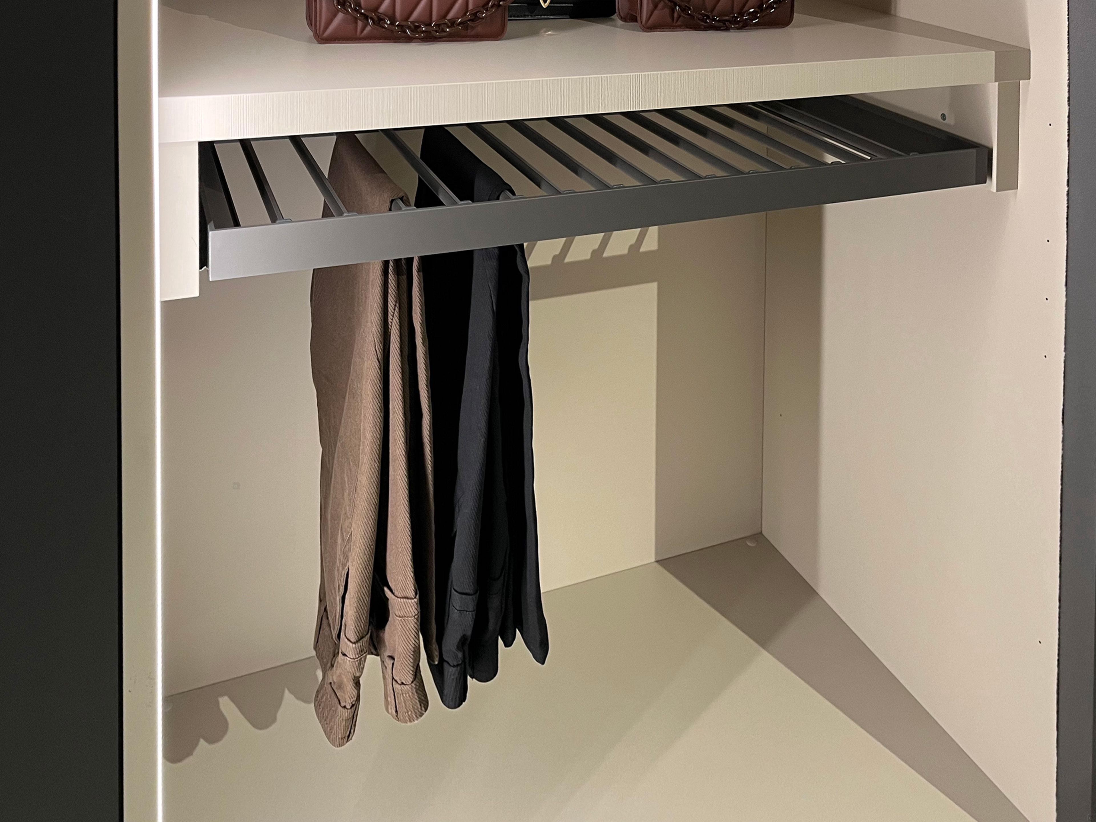 Boutique Player 02 outlet è un armadio con tre ante scorrevoli trasparenti in vetro con telaio in metallo. L'interno dell'amadio è progettato con criteri di praticità e funzionalità, arricchito da accessori che aumentano il valore e garantiscono il massimo comfort d'uso. Tra gli elementi più distintivi spiccano il portapantaloni estraibile e la cassettiera sormontata da un raster porta camicie. Nella parte superiore del modulo centrale è presente un servetto estraibile, che consente di appendere i capi con estrema facilità e senza il minimo sforzo, i due vani esterni sono invece dotati di tubi appendiabiti. A completare il tutto, tre barre a Led incassate in fresata diffondono una luce armoniosa e discreta, valorizzando l'interno dell'armadio e offrendo una perfetta visibilità.L'armadio Boutique Player 02 outlet è un arredo moderno ed elegante perfetto per completare zone notte ricercate.