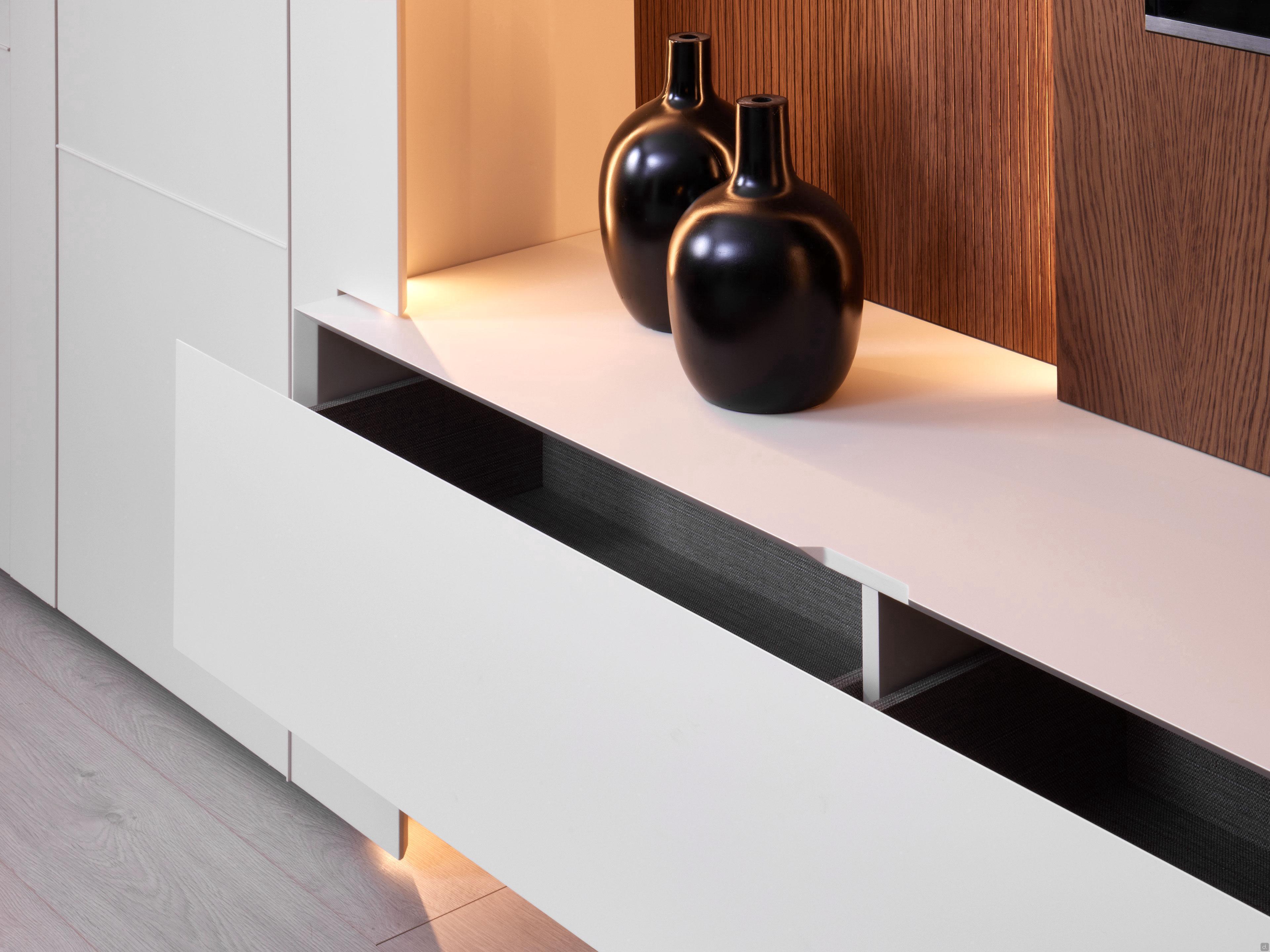 Apertura: tramite incavo su top (cestone) o su fianco laterale (cassetti).