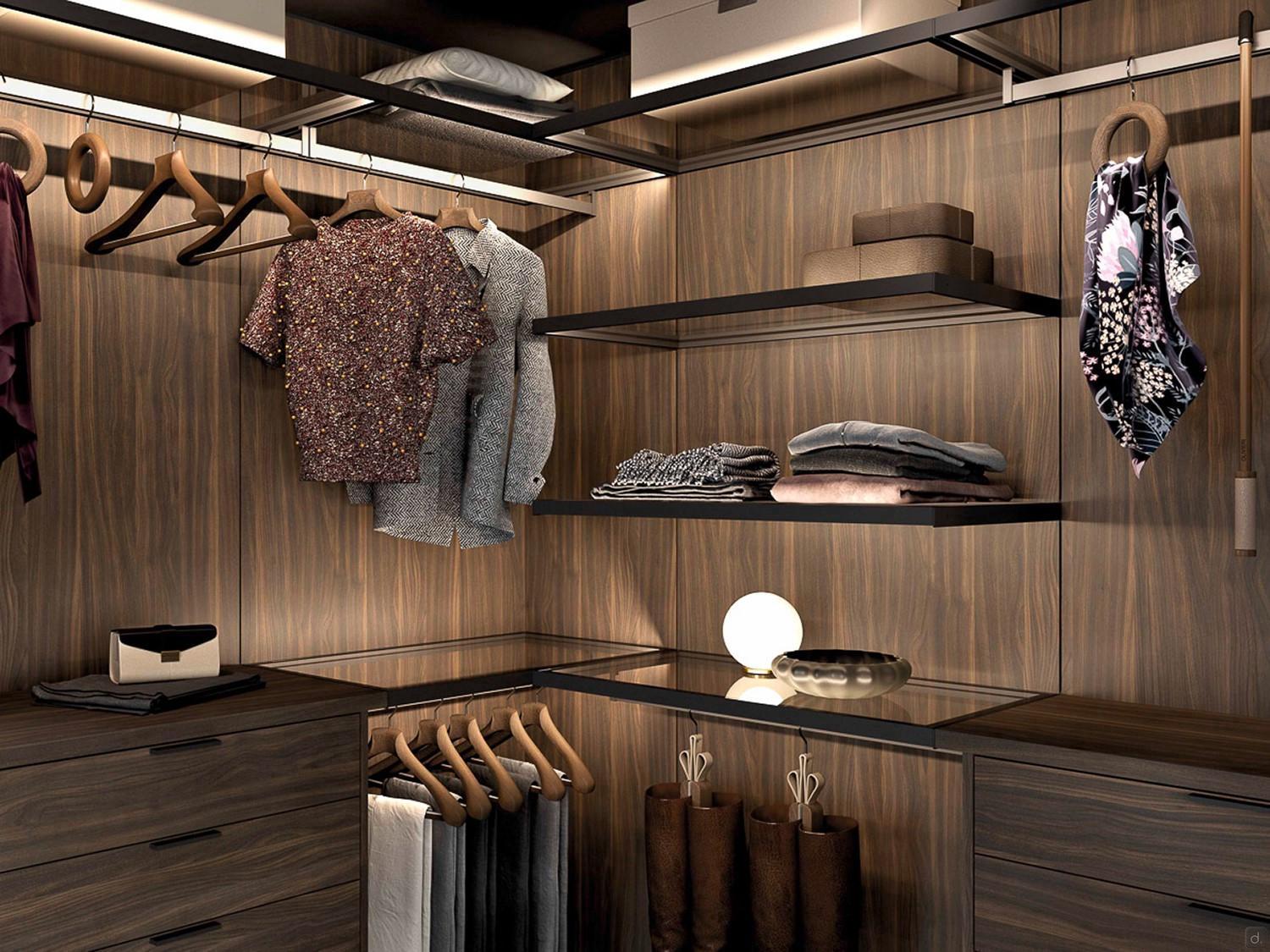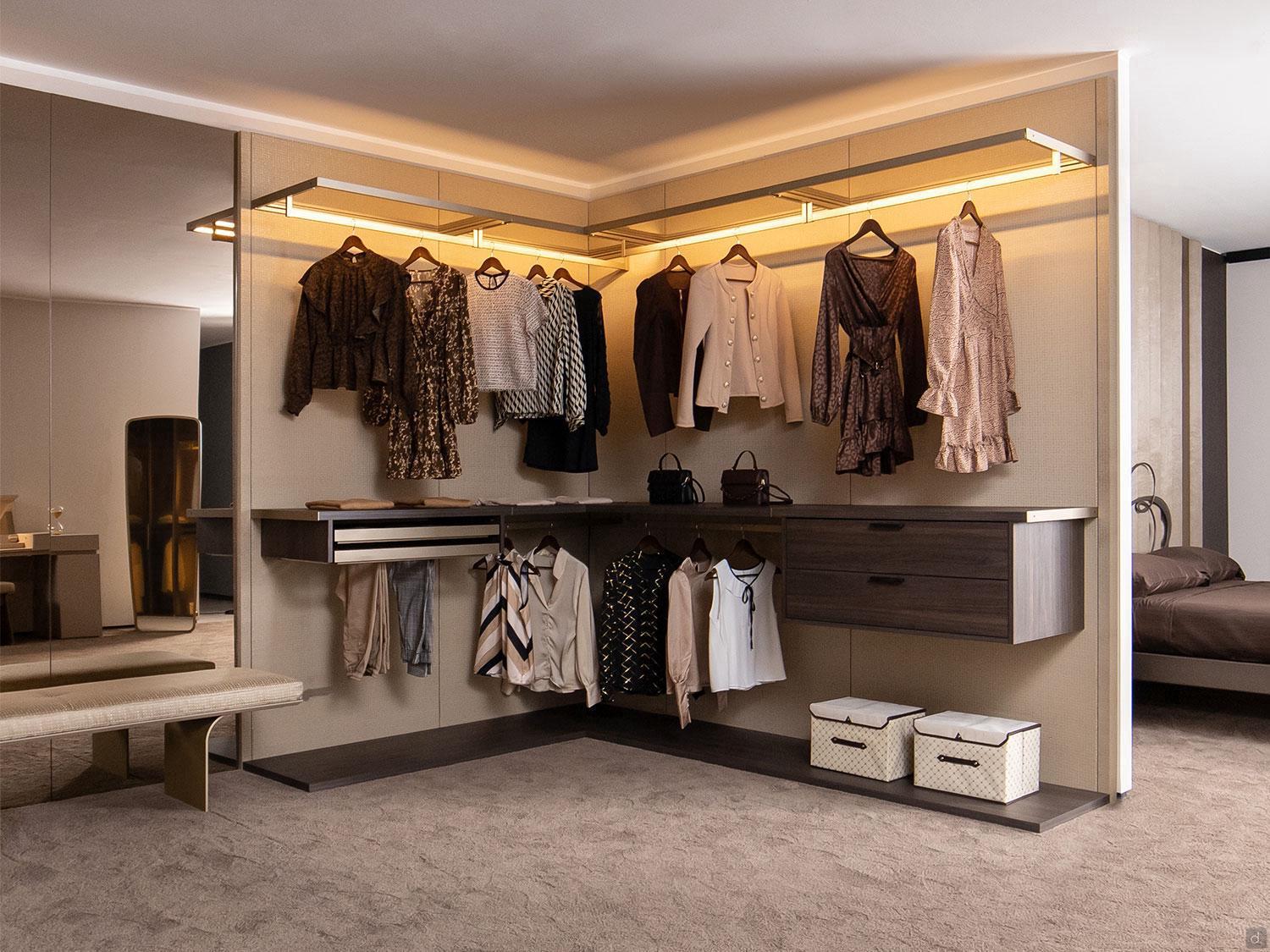 tubo appendiabiti: a sezione rettangolare cm 3 x 1, in metallo laccato brown o in finitura metallica. Disponibile su tutte e 4 le larghezze di ripiano / pannello presenti a configuratore.