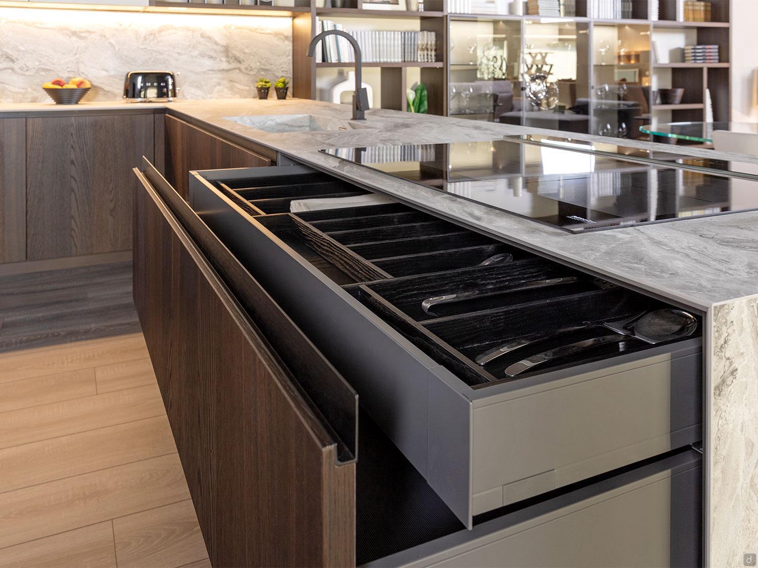 Tutti gli arredi della cucina su misura sono totalmente personalizzabili nelle dimensioni e finiture desiderate. Vieni a trovarci in showroom per sviluppare insieme la tua soluzione e vedere dal vivo le finiture e i colori disponibili.