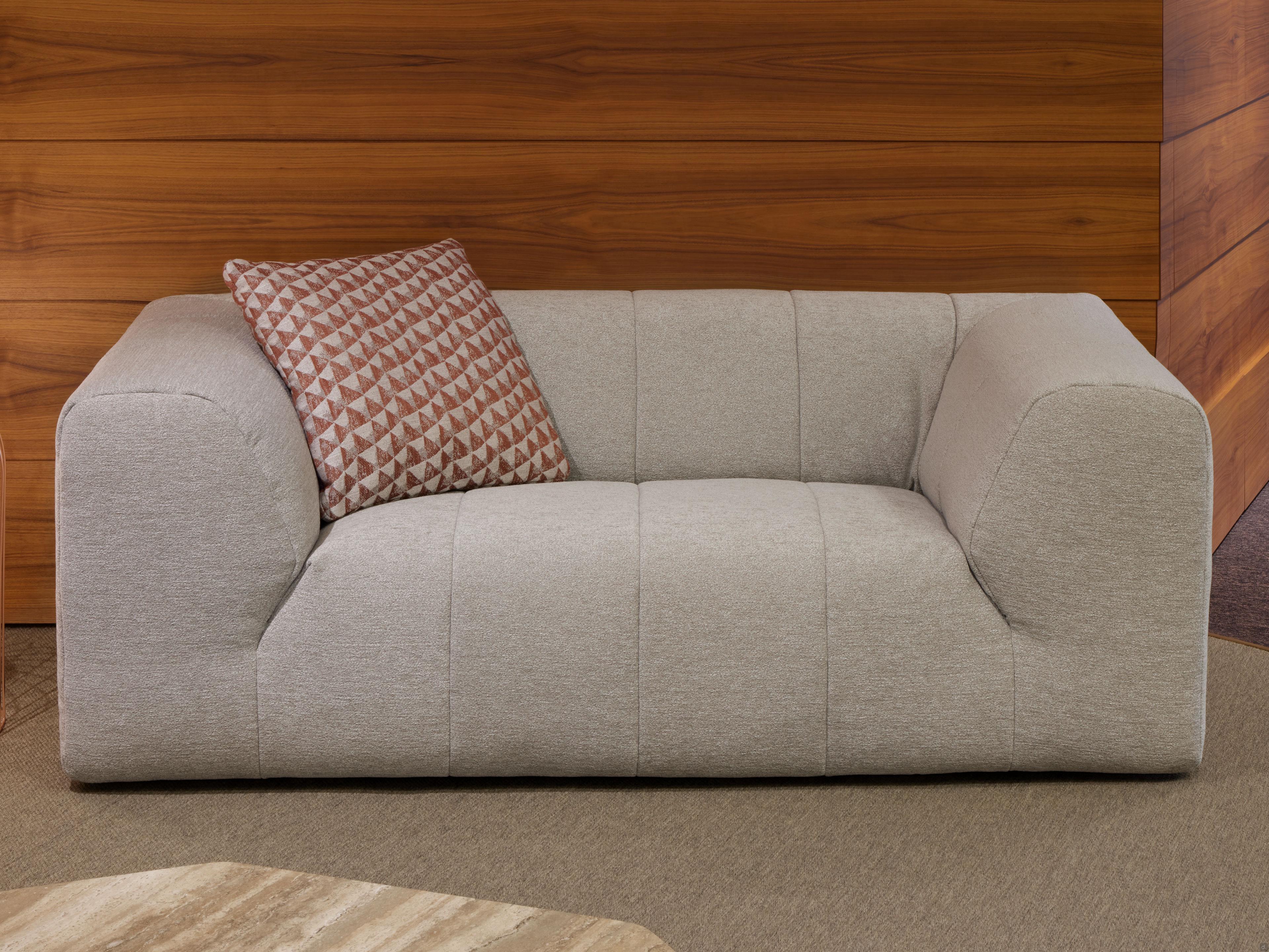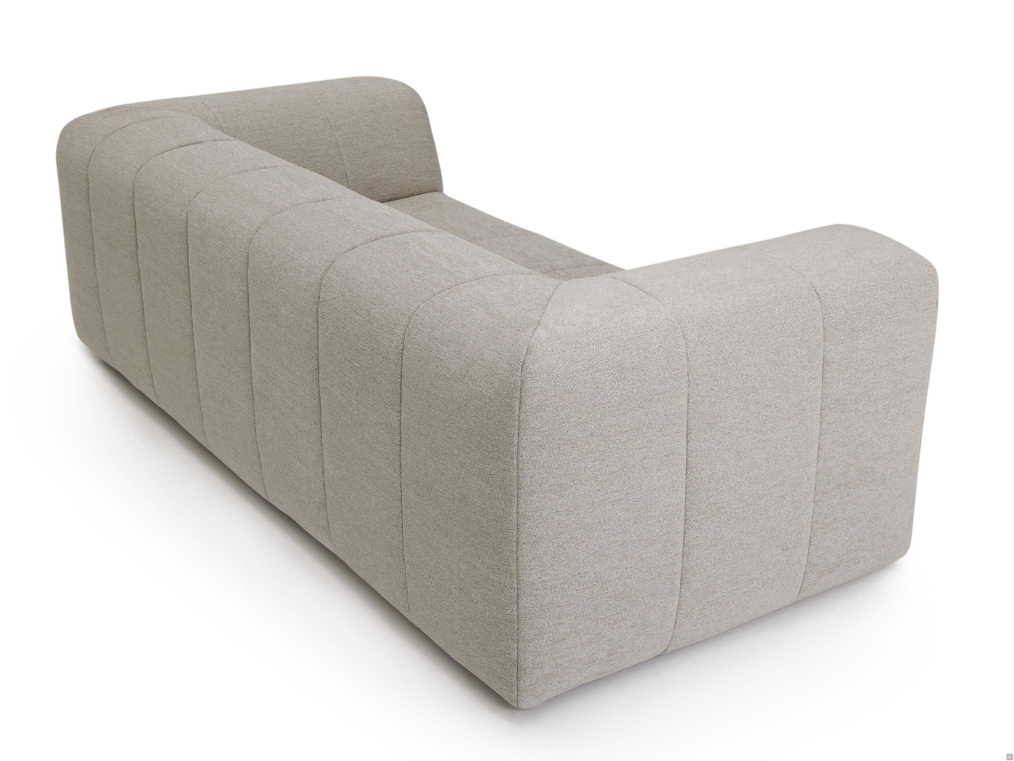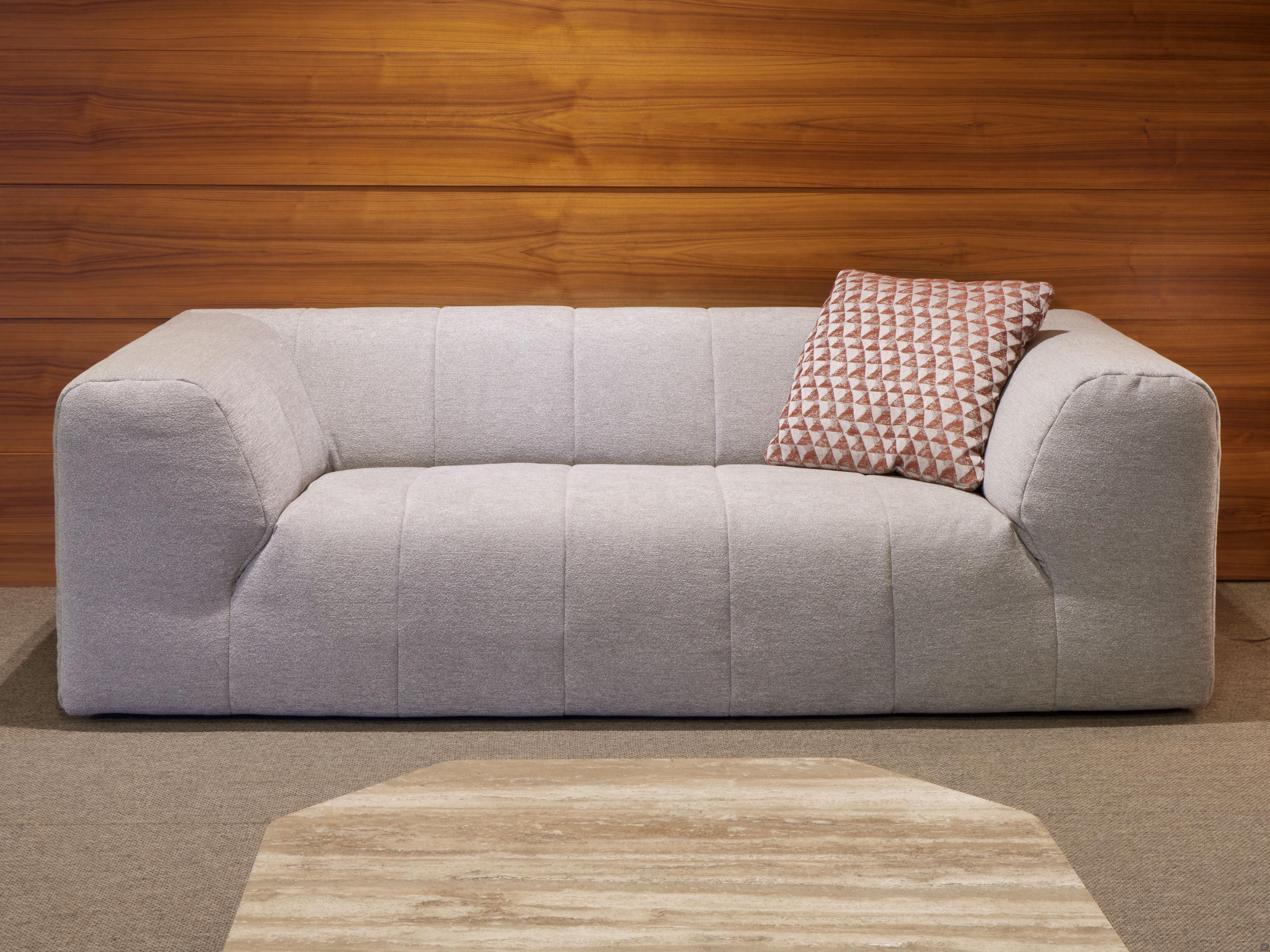 Caratteristichegenerose imbottiture su braccioli e schienali, con trapuntature verticali che proseguono sulle seduterivestimento in tessuto completamente sfoderabilepiedini bassi e nascosti per un aspetto ancora più scultoreo e monumentaleimbottitura in poliuretano espanso indeformabile