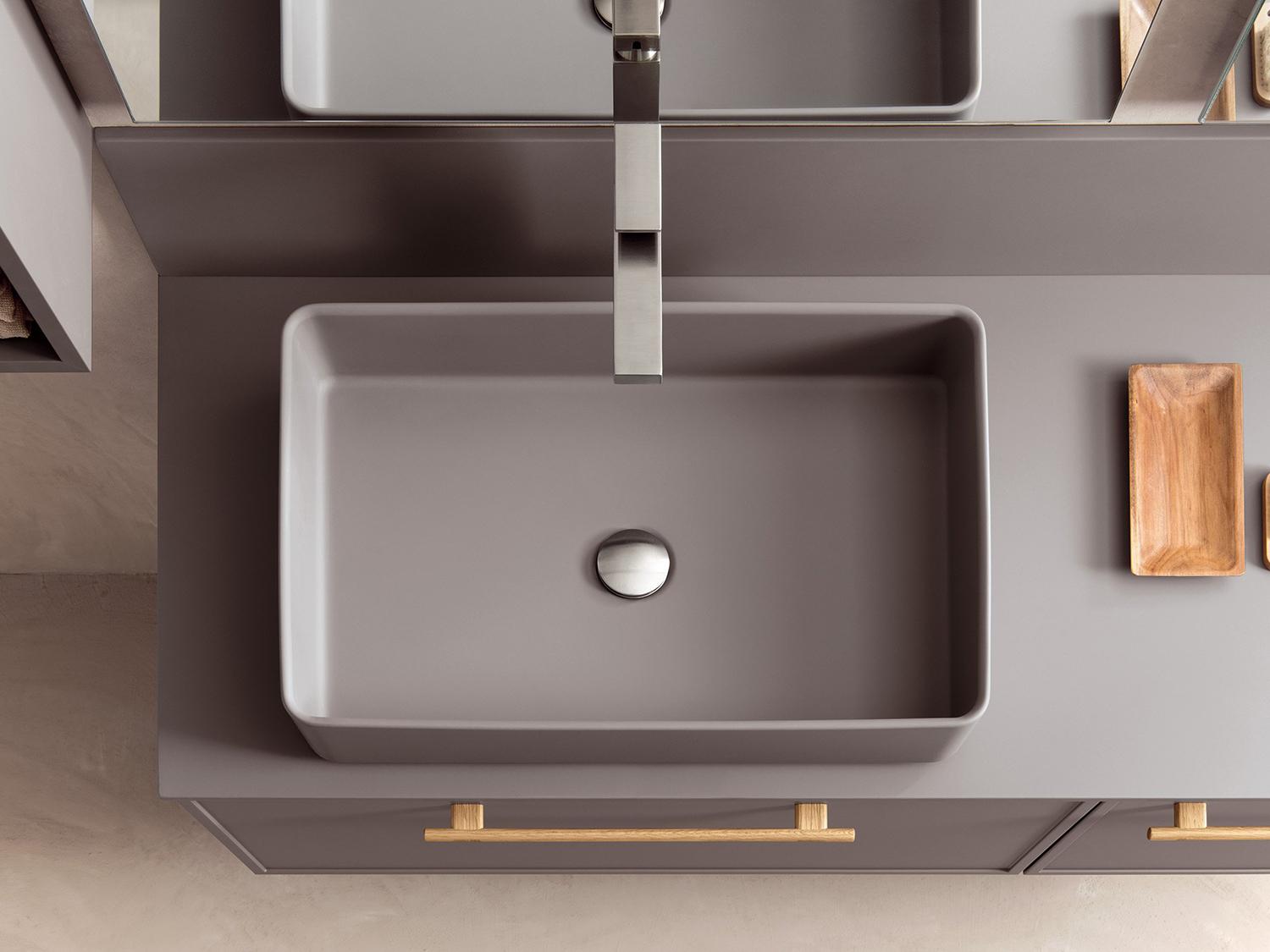 top e lavabo in Minera-Kolor, un materiale resistente e pregiato laccato in tinta al resto della composizione