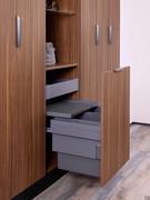 Caratteristiche colonna lavanderia con colonne battenti e colonna centrale a giorno, completa di ripiani in vetro 230 cm di larghezza e 210 di altezza, capaci di garantire una capienza molto elevata completa di vano portalavatrice e asciugatrice e portabiancheria estraibile personalizzabile grazie a un ampio campionario di nobilitati e laccati opachi o lucidi