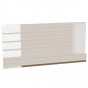 Barre Led sotto-mensola: da 11,6 W ciascuna, complete di alimentatore da 75 W con protezione sovraccarico. Fissaggio magnetico alla mensola, con copertura frontale in tinta alla mensola da 1,2 cm e luce led incassata da 3000K. I pannelli boiserie, così come il retro-pannello in MDF, prevedono di serie una scanalatura per il passaggio dei cavi di alimentazione, che escono sempre da destra (guardando frontalmente la mensola).