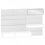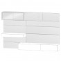 Pannelli Boiserie: realizzati in particelle di legno cm sp.2,5, rivestiti con nobilitazione sintetica anche laccata opaca, metallizzata o con piallaccio di legno verniciato. Retro pannello boiserie in MDF nero spessore cm 1,9, completo di predisposizioni e ferramente per il fissaggio a parete. Il pannello mantiene la boiserie distanziata cm 2,4 dal muro e viene sagomato di volta in volta, in funzione degli ingombri della composizione.