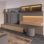 Base Ribalta: dotata di speciali cerniere per la rotazione dell'anta con bordo a 45°, incassata nello spessore della struttura e del frontale. Dotata inoltre di meccanismo per annullare il peso dell'anta in fase di chiusura e garantire il minimo sforzo all'utente durante l'utilizzo.