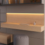 Barra Led da schienale scrittoio: da 11,6 W nella versione da 120 cm (115,7 cm di corpo illuminante) e da 14,6 W nella versione da 150 cm (145,7 cm di corpo illuminante), completa di alimentatore. Montata sul pannello boiserie appena superiore allo schienale (cm sp.2,5), con led incassato nello spessore del pannello e cavo passante nell'intercapedine tra pannelli e retropannello in MDF.