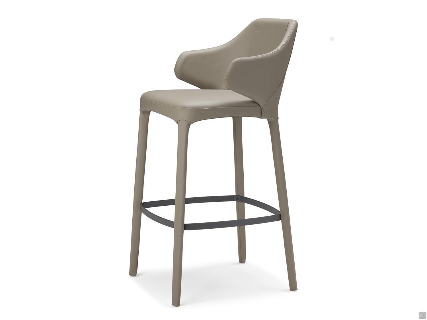 Lo sgabello da bar con braccioli Wanda di Cattelan è totalmente rivestito in tessuto, similpelle o pelle a scelta tra tutte le tonalità disponibili a campionario, fatta eccezione per il poggiapiedi perimetrale in metallo goffrato graphite. Il design è moderno: questo sgabello si contraddistingue soprattutto per la presenza dei suoi braccioli avvolgenti che si congiungono allo schienale andando a formare un unico corpo.Disponibile in due altezze differenti, Wanda è adatto soprattutto in contesti commerciali, in bar eleganti e raffinati in abbinamento con la sedia omonima, ma può trovare la sua collocazione anche in un ambiente home. La seduta leggermente imbottita e i braccioli avvolgenti garantiscono un elevato comfort.