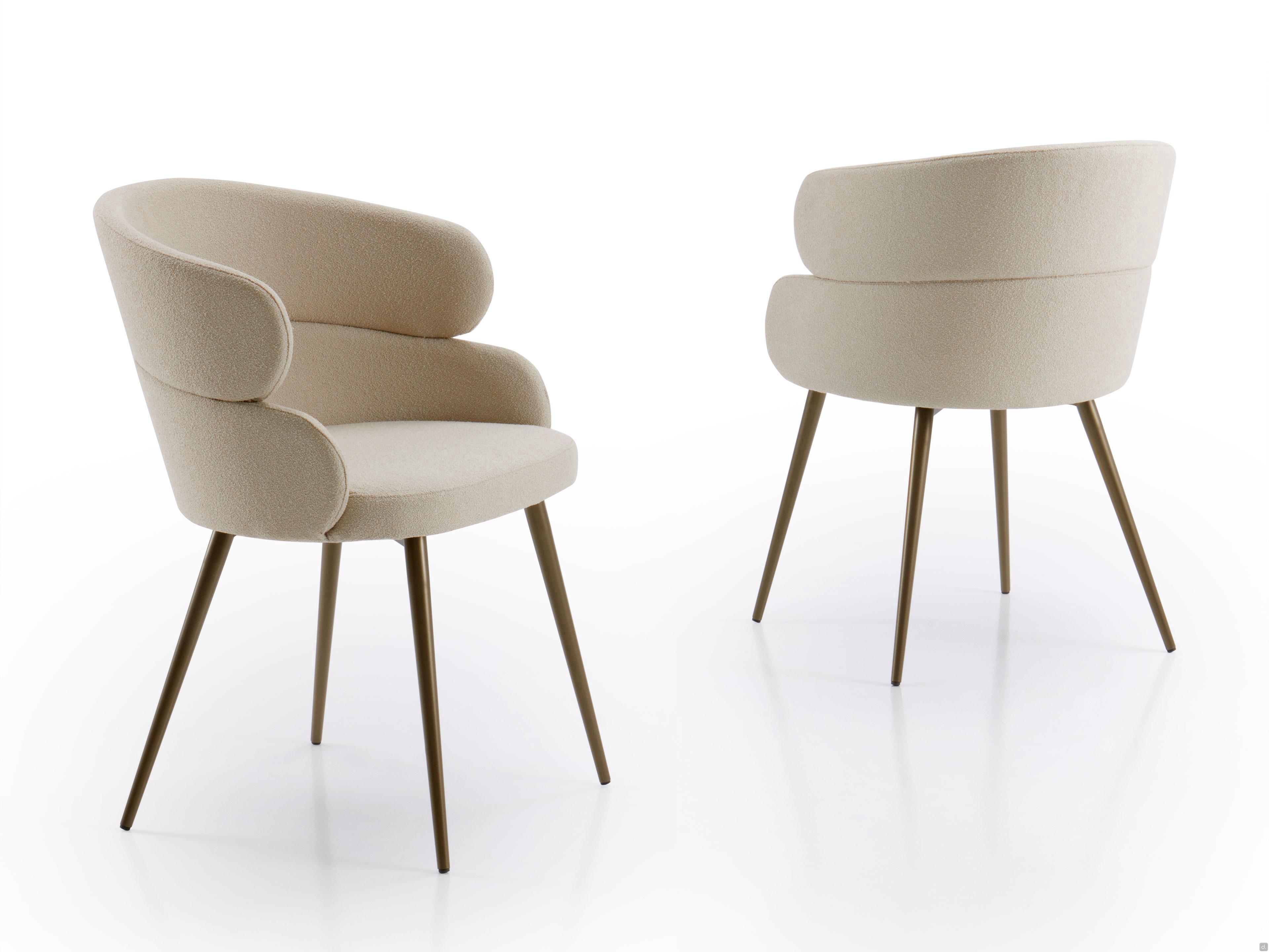 Caratteristichepoltroncina per la sala da pranzo in due versioni, con schienale parziale o a tutta larghezzaforme morbide e avvolgenti, per assecondare sia il design che il comfortrivestimento personalizzabile in tessuto, velluto o similpellestruttura in metallo verniciato, disponibile in più versioni