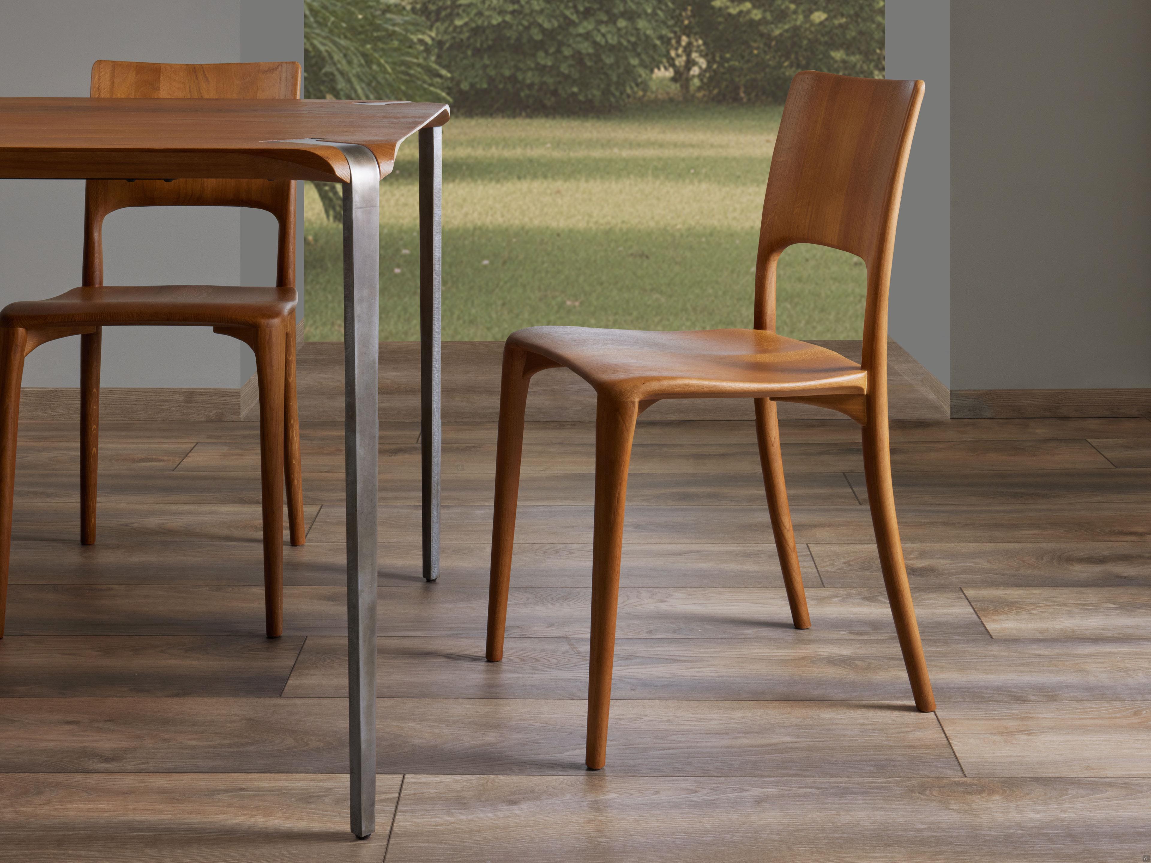 Caratteristiche sedia in legno realizzata lavorando direttamente elementi "pieni", riducendo giunture e incollature numerose finiture disponibili, dai toni del rovere naturale fino alle tinte scure come caffè, cacao o nero possibilità di laccatura RAL o NCS, per una colorazione a poro aperto completamente personalizzata seduta e schienale interamente in legno massello, ma sagomati per garantire la massima ergonomia
