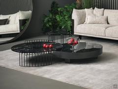 tavolino rotondo con piano in metallo, vetro cristallo, ceramica o marmo