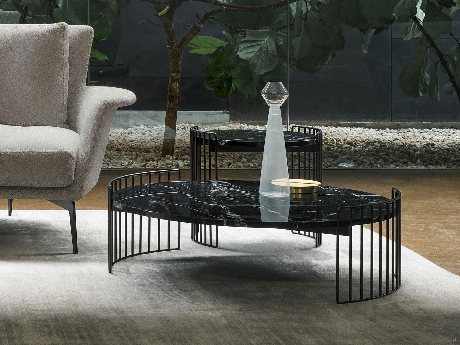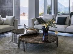 Harpe di Bonaldo è un tavolino da salotto rotondo in pietra caratterizzato dalla base realizzata in modo da ricordare le corde dello strumento musicale dal quale trae ispirazione, l'arpa.