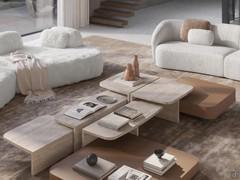 Auri è un tavolino in marmo travertino con piano rettangolare sagomato dai bordi arrotondati, largo 80 o 120 cm. Le tre altezze a disposizione, che vanno dai 25 ai 40 cm, lo rendono il complemento ideale per creare importanti e originali composizioni di più tavolini fronte divano, con tre piani che si intersecano senza mai disturbarsi.Realizzato a partire da una lastra naturale di travertino, marmo monumentale dal quale il mondo arredo attinge spesso con ammirazione, il tavolino Auri è un accessorio di lusso dalle linee moderne, organiche e semplici: tutte caratteristiche che assecondano le grandi tendenze del design e ne esaltano il valore estetico e costruttivo.Completa la scelta di tavolini il modello da 120 x 45 cm in legno, disponibile in noce canaletto o in rovere tinto moka, per creare interessanti combinazioni bi-materiale.